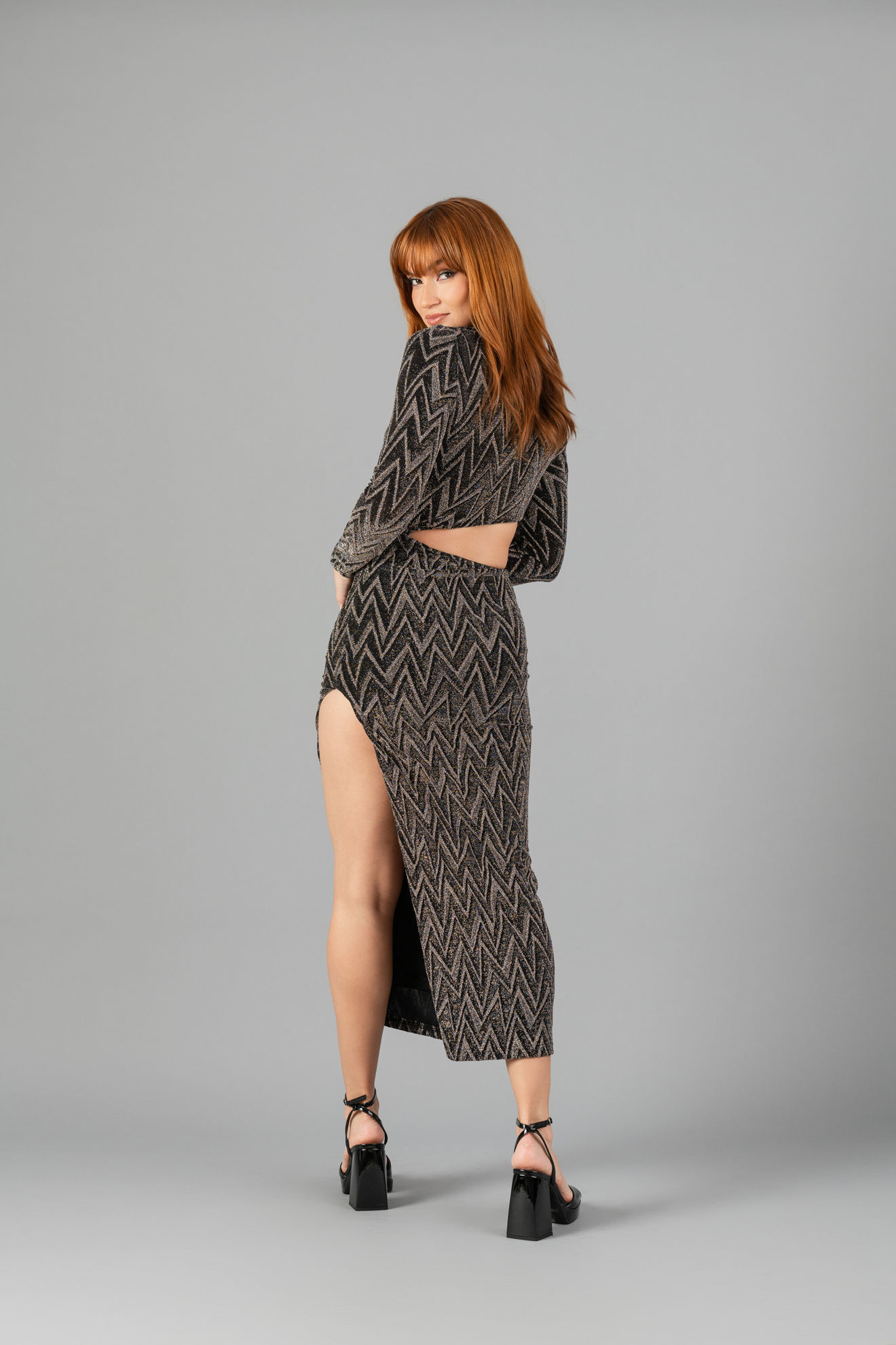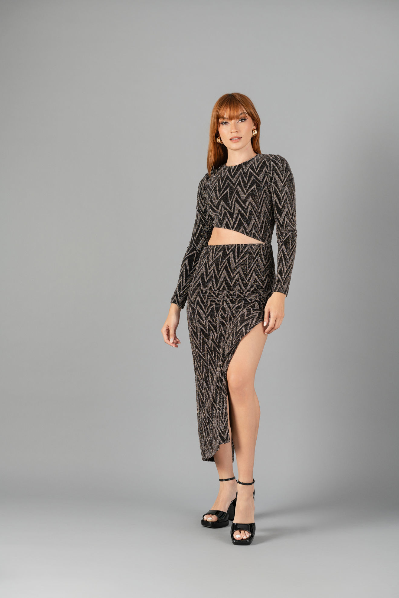 Vestido Manga Larga, Aberturas Laterales (Exclusivo Pagina)