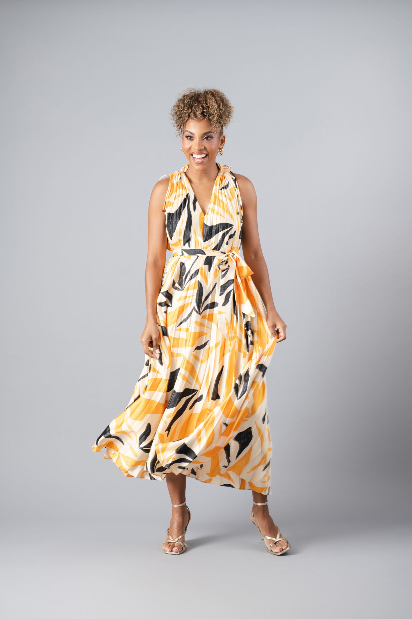 Vestido Plisado Estampado En Satin ( Exclusivo Pagina)