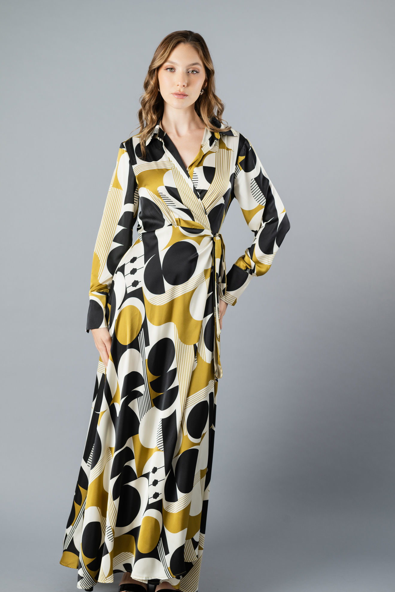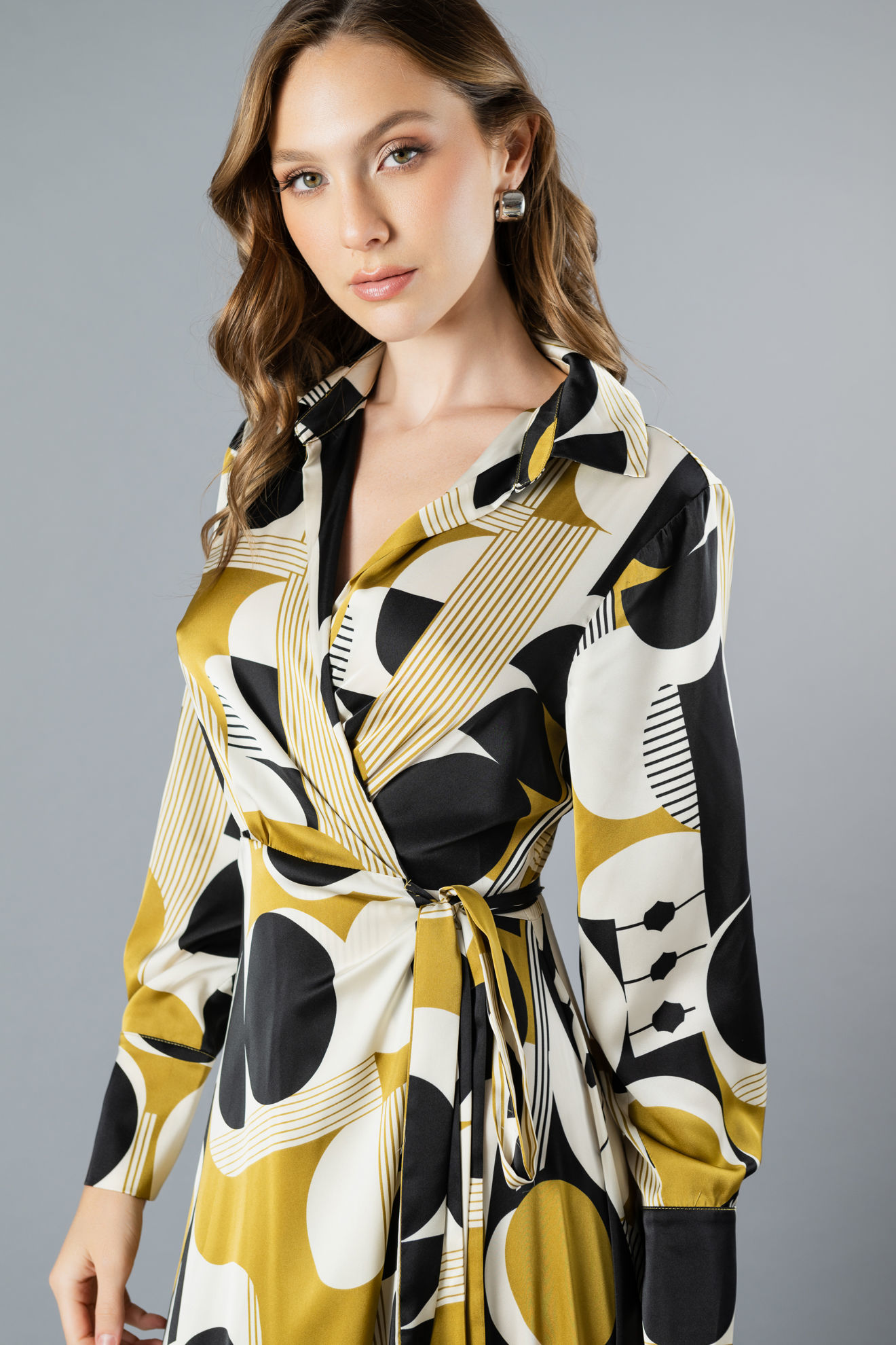 Vestido En Satin Cruzado Manga Larga (Exclusivo Pagina)