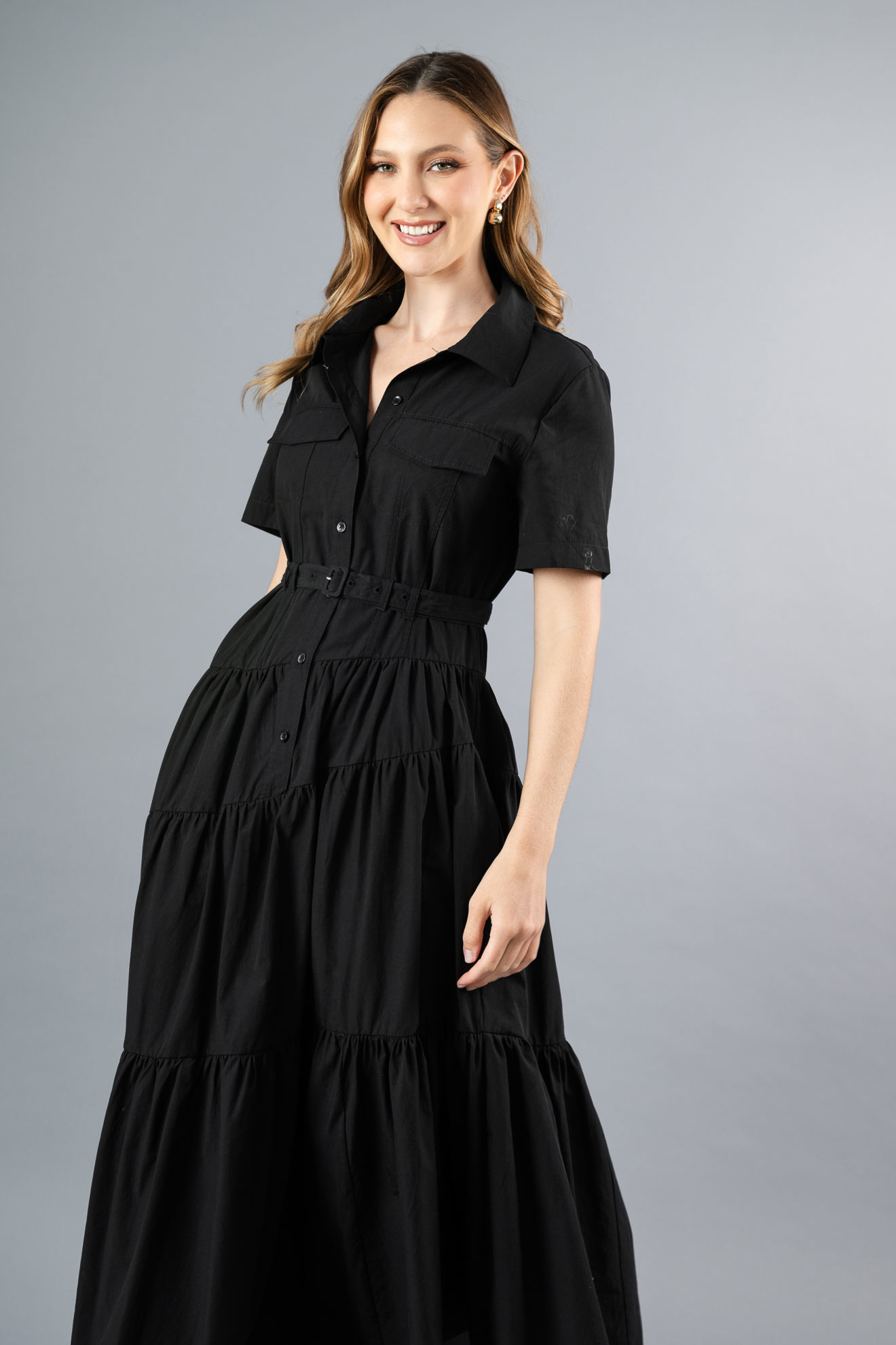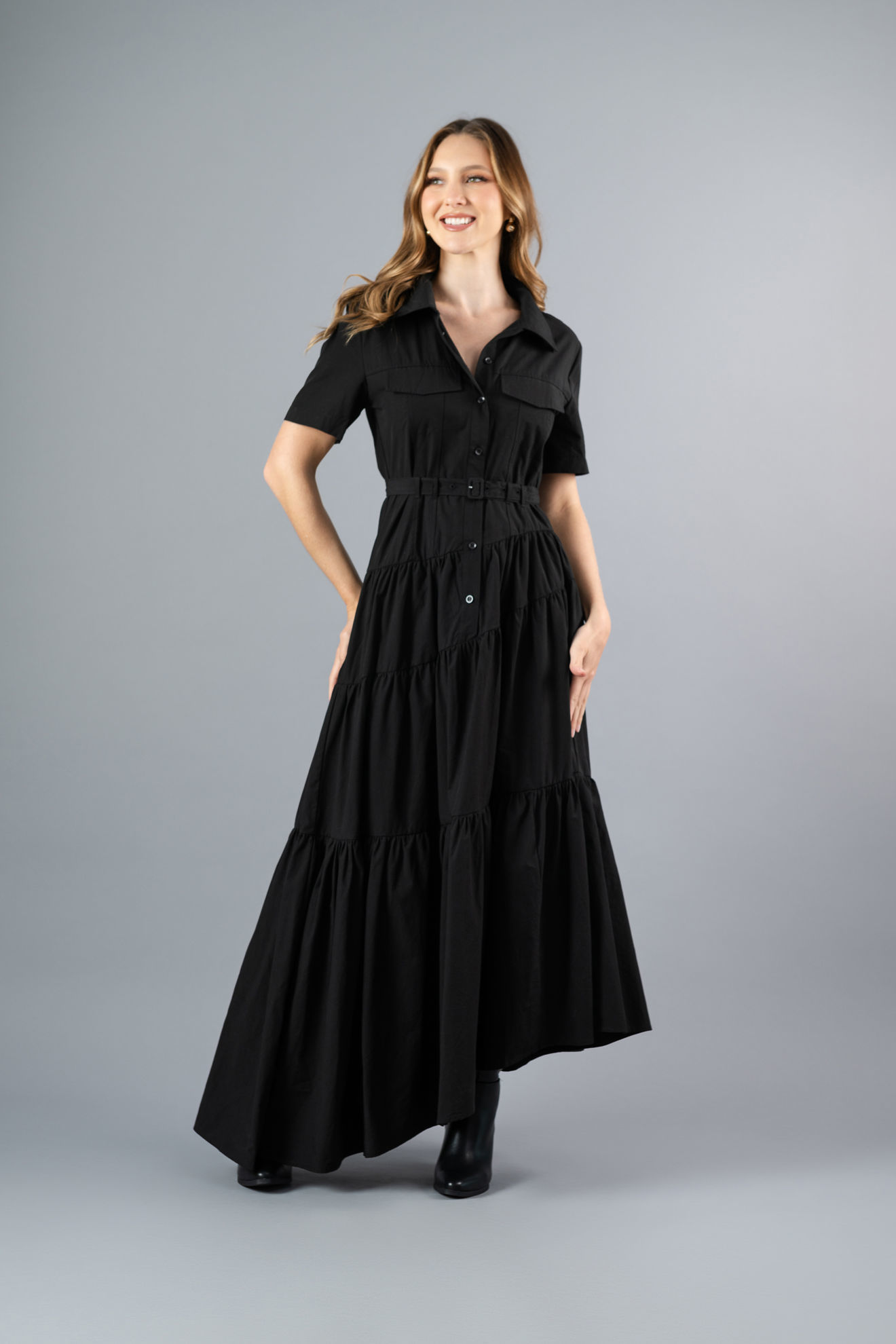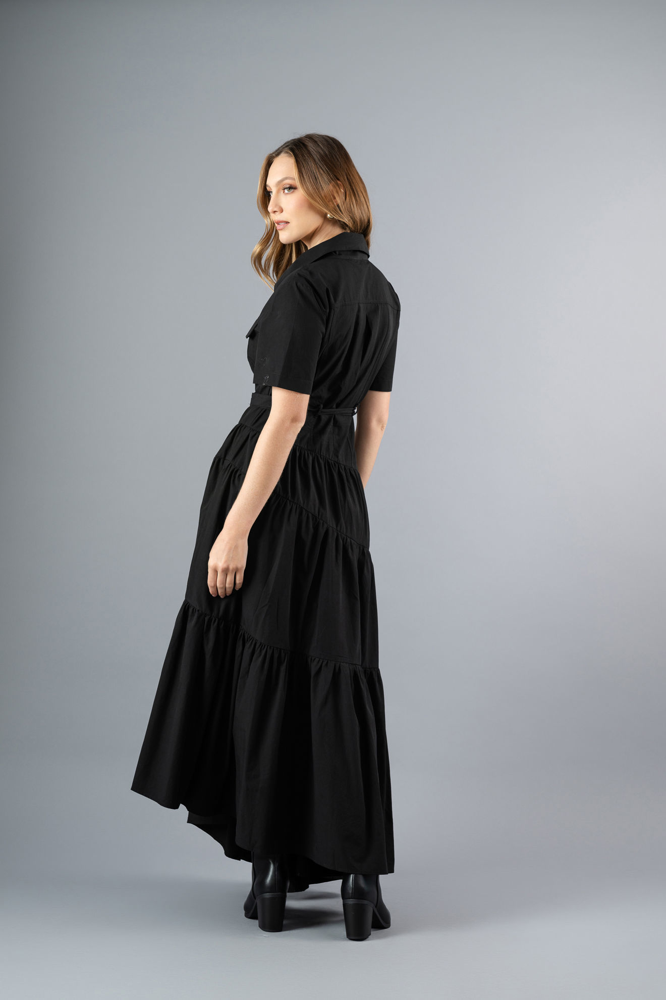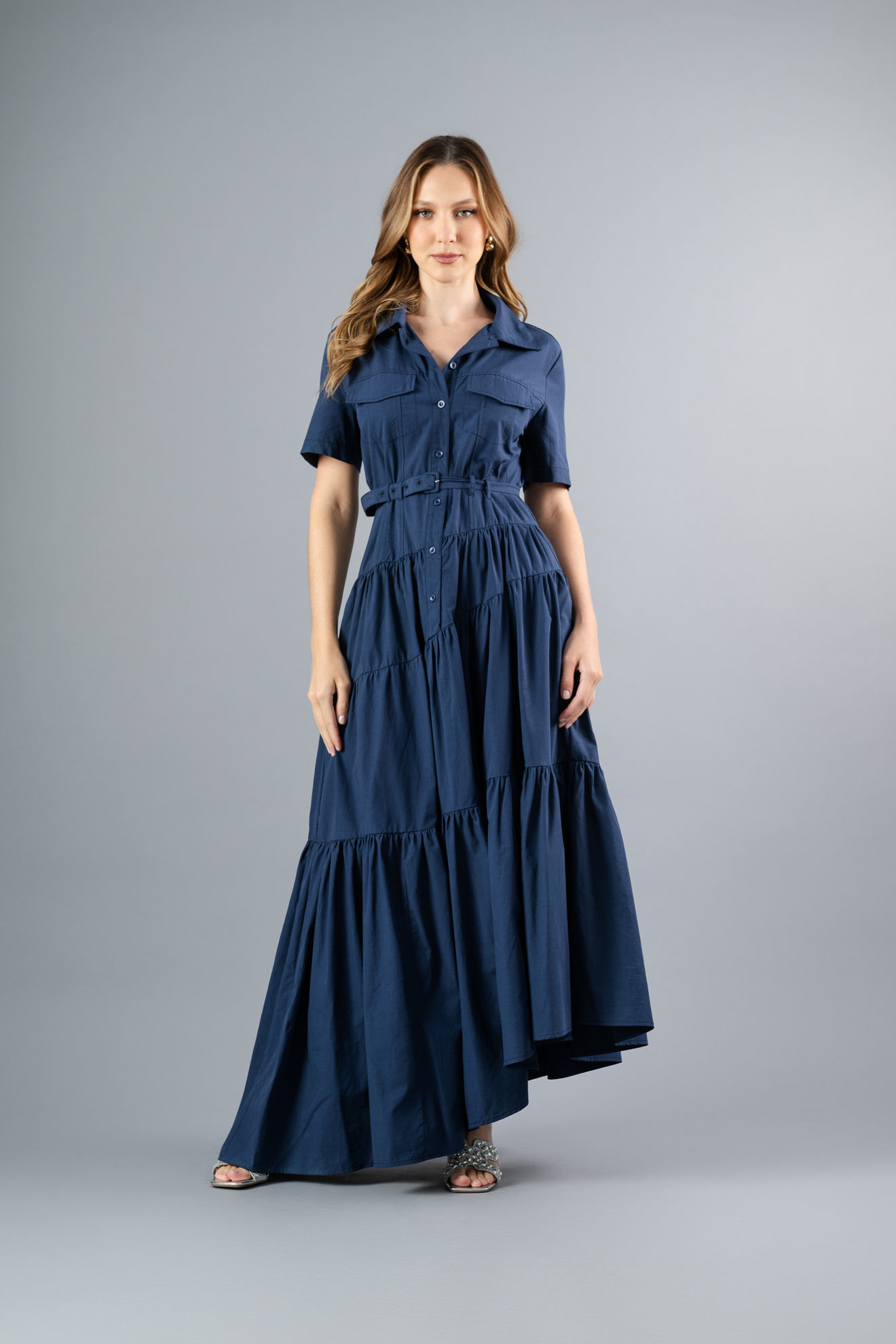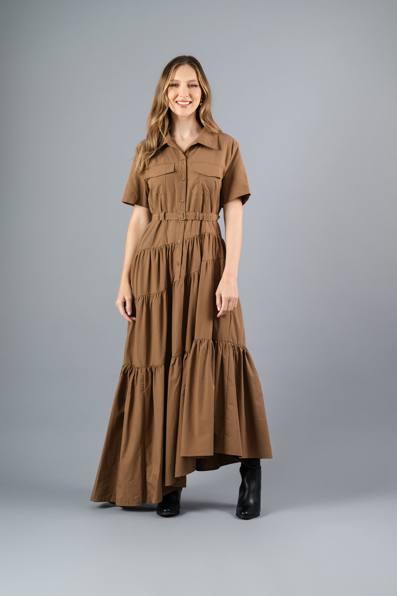 Vestido Camisero Tapas Bolsillo, Falda Asimetrica (Exclusivo Pagina)