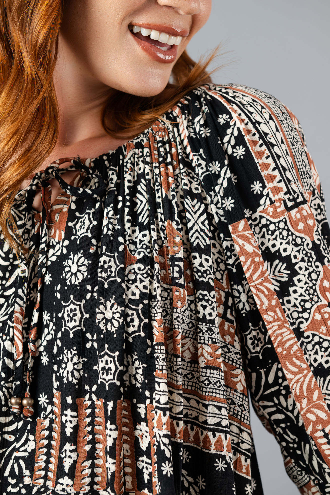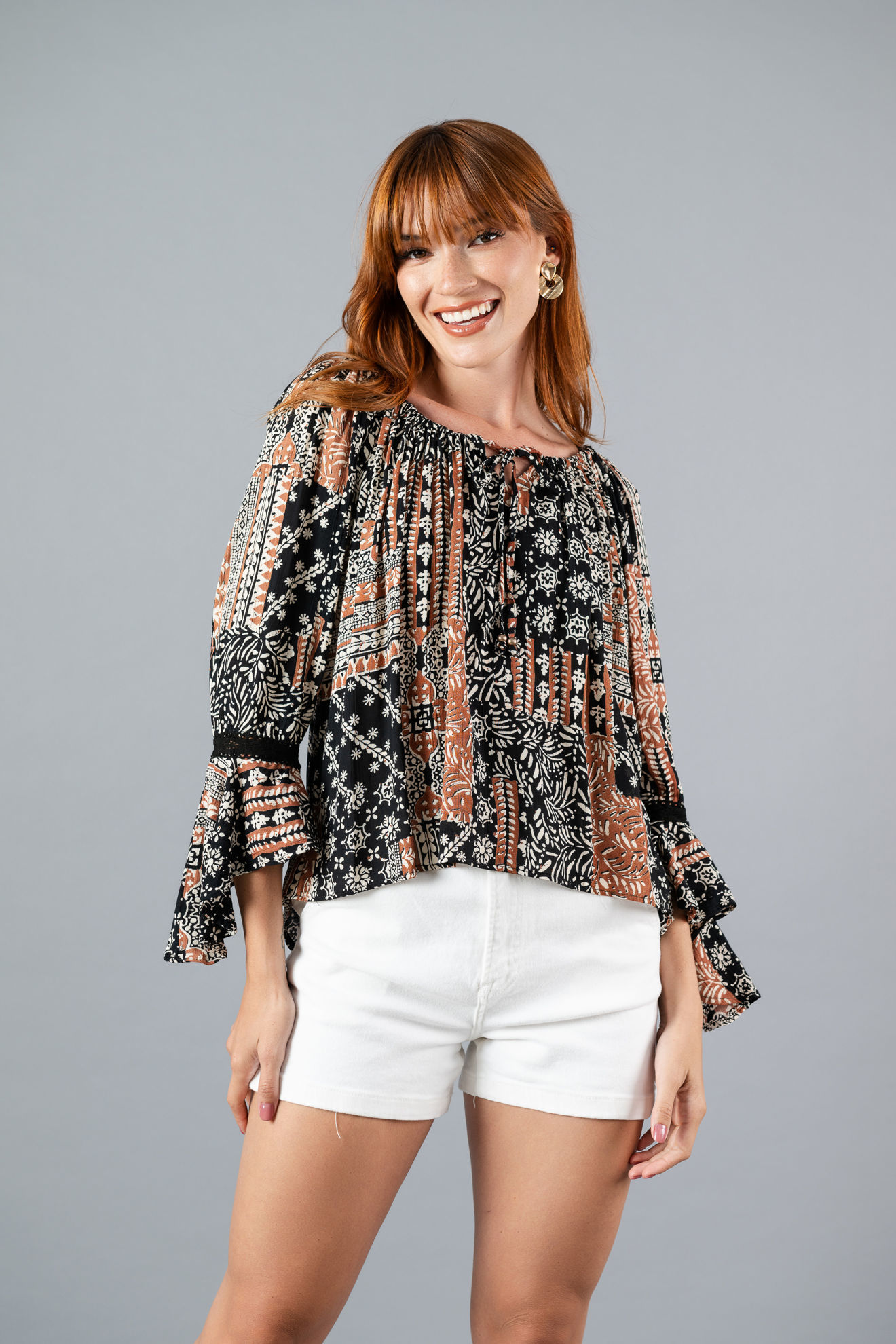 Blusa En Rayon Estampada, Manga Campana (Exclusiva Pagina)