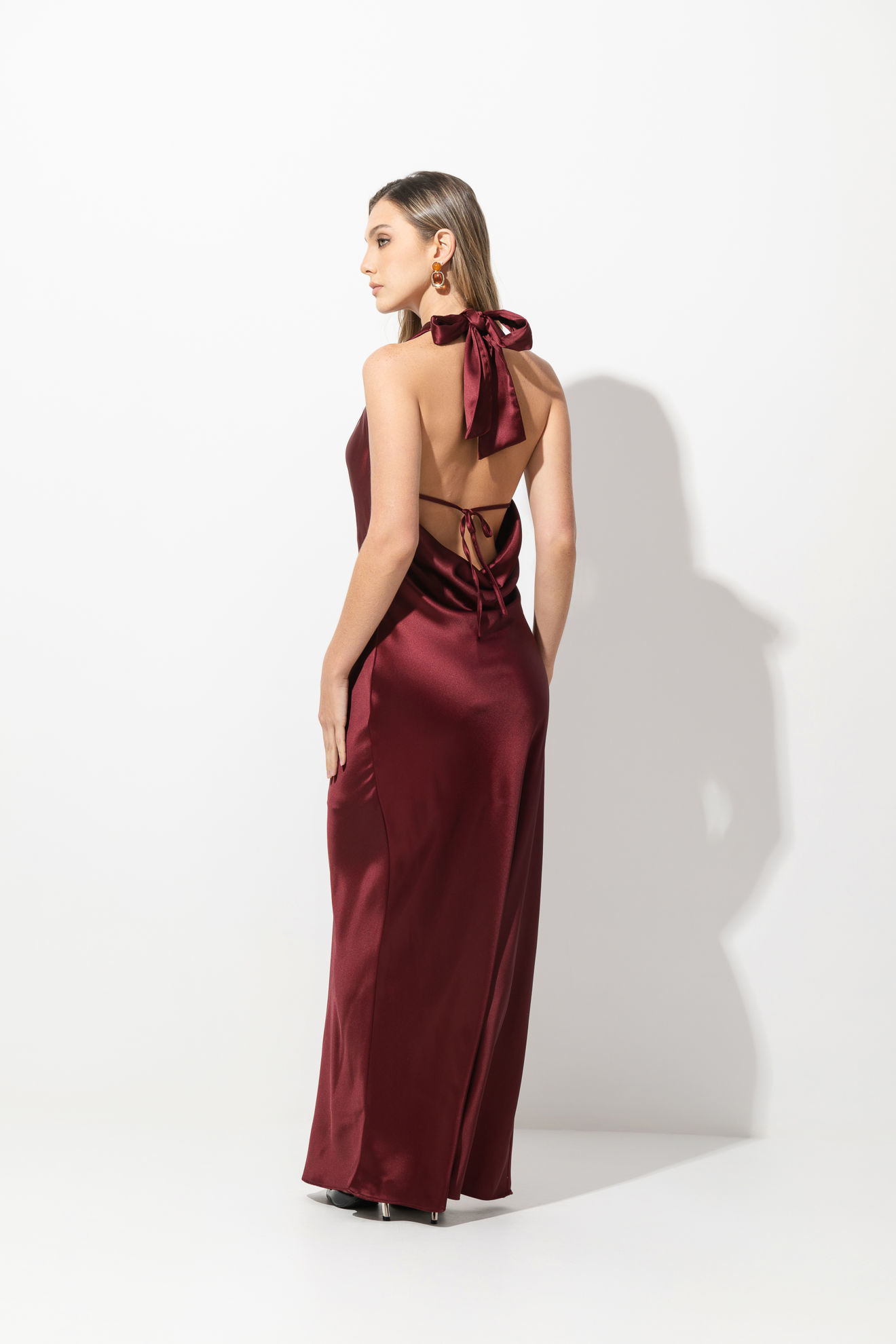 Vestido En Satin Cuello Halter Accesorio Hebilla Dorada