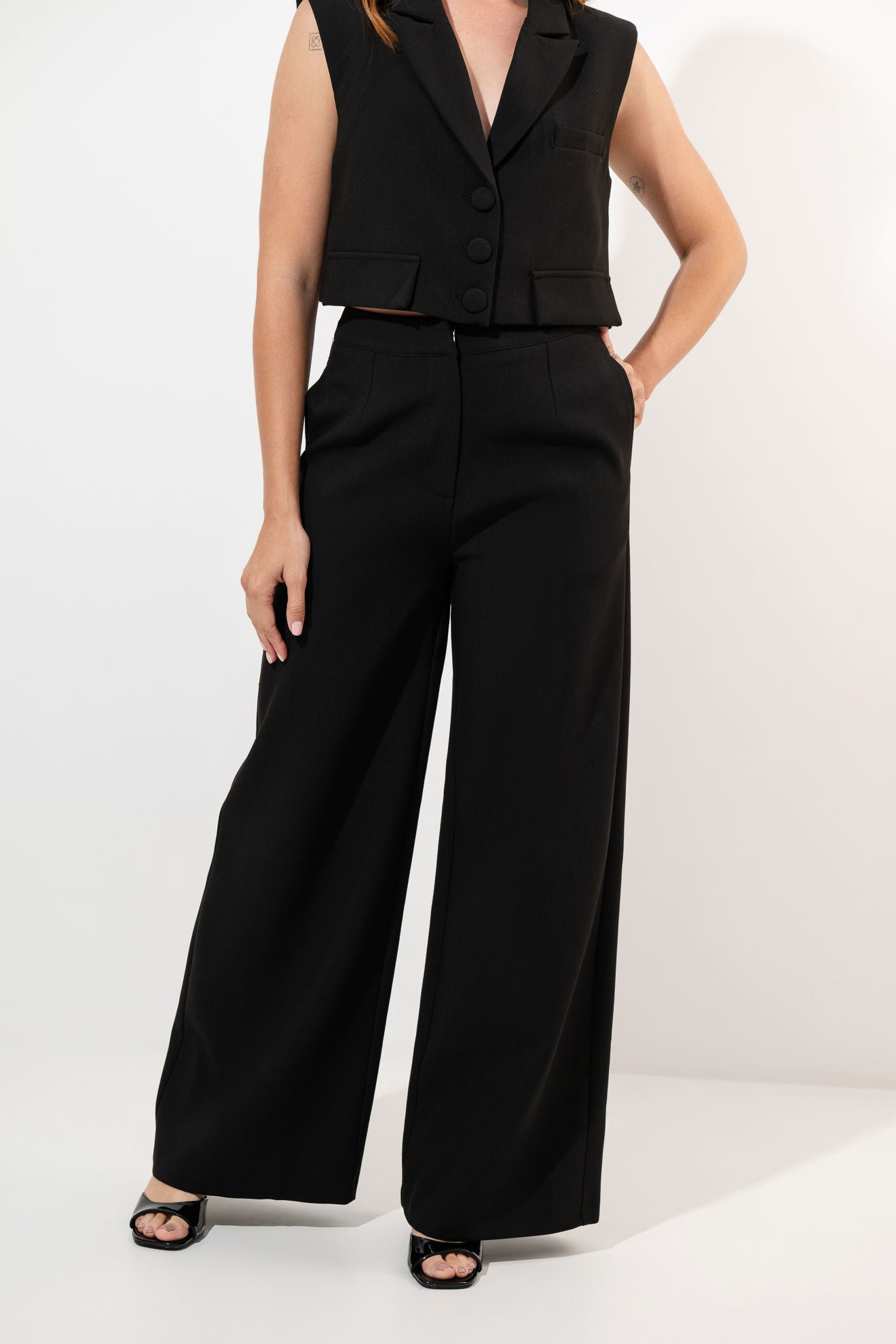 Set Pantalon , Crop Top Cuello Y Botones