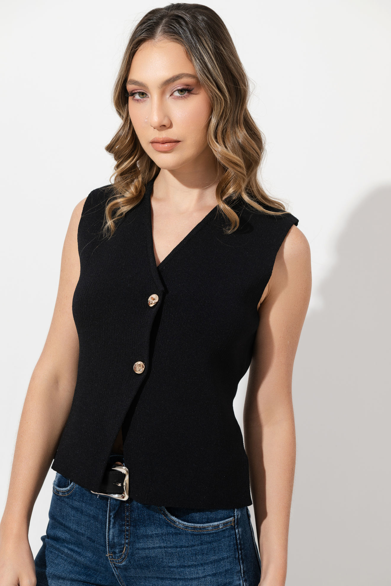 Blusa Tejida Estilo Chaleco Botones Dorados