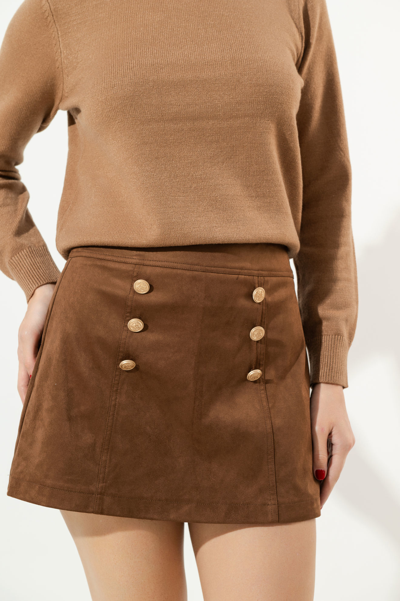Skort En Suede Botones Dorados