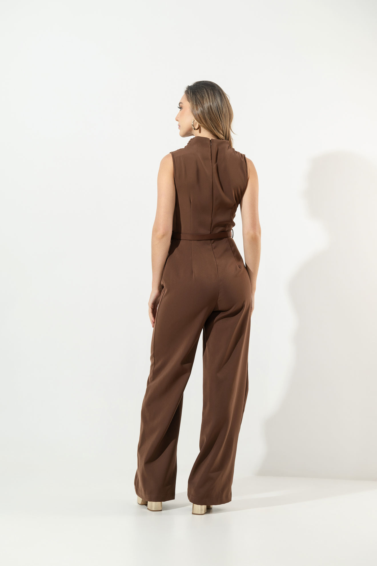 Jumpsuit Sin Mangas Con Cinturon, Cuello Alto