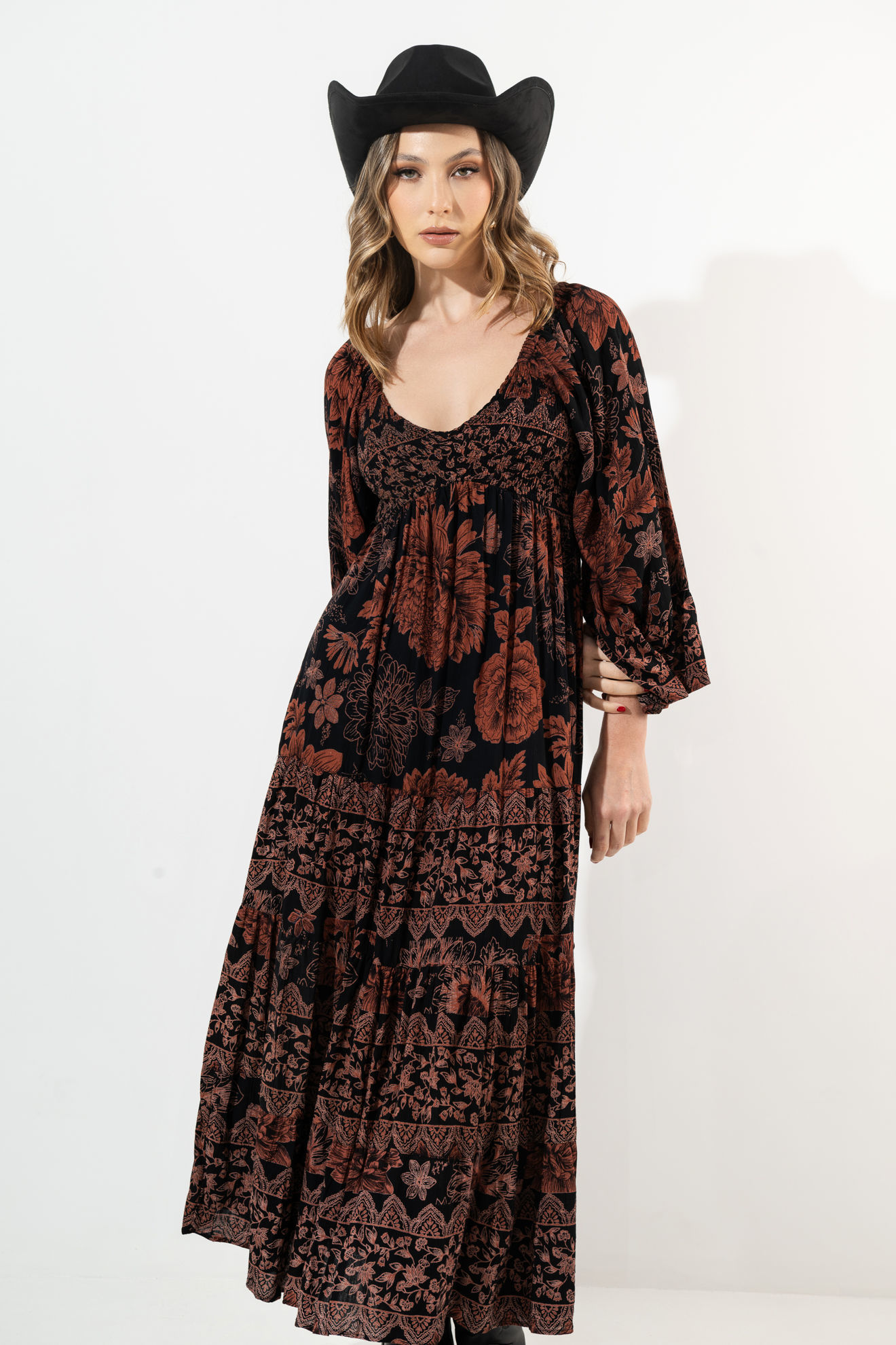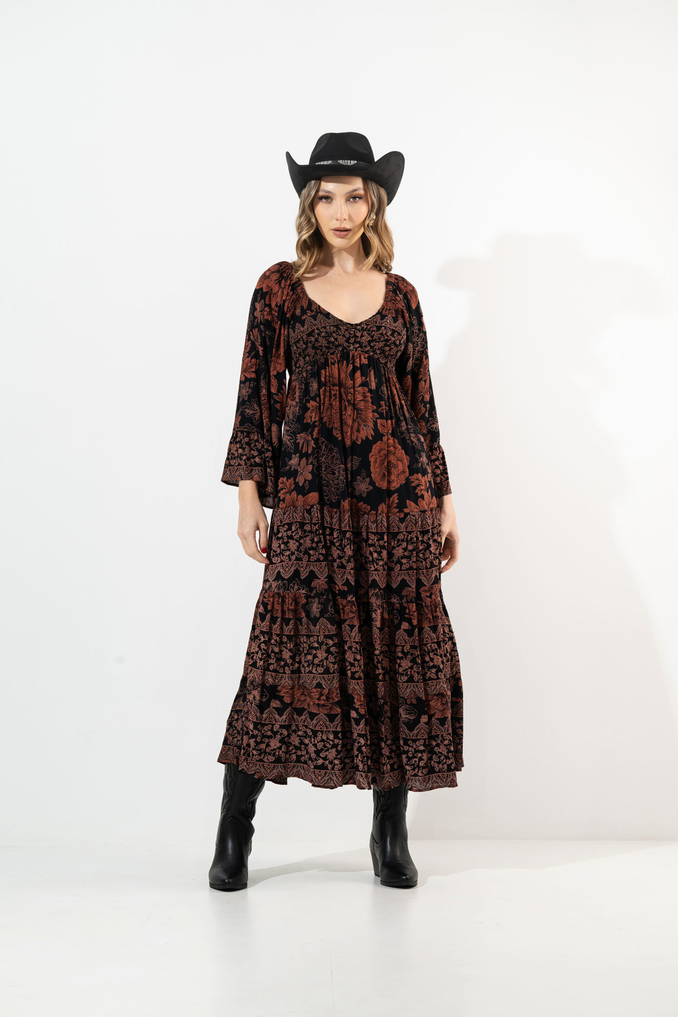 Vestido Manga Larga Estampado Cuello V