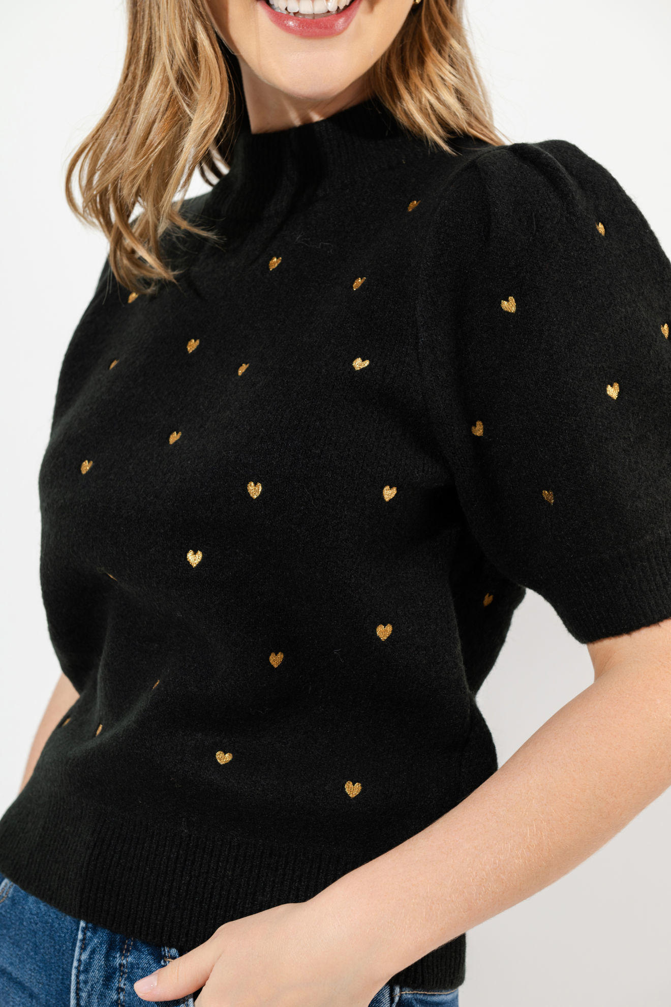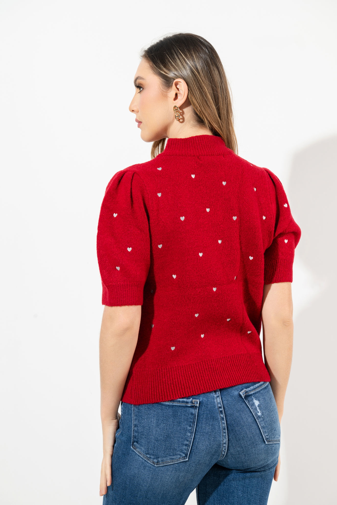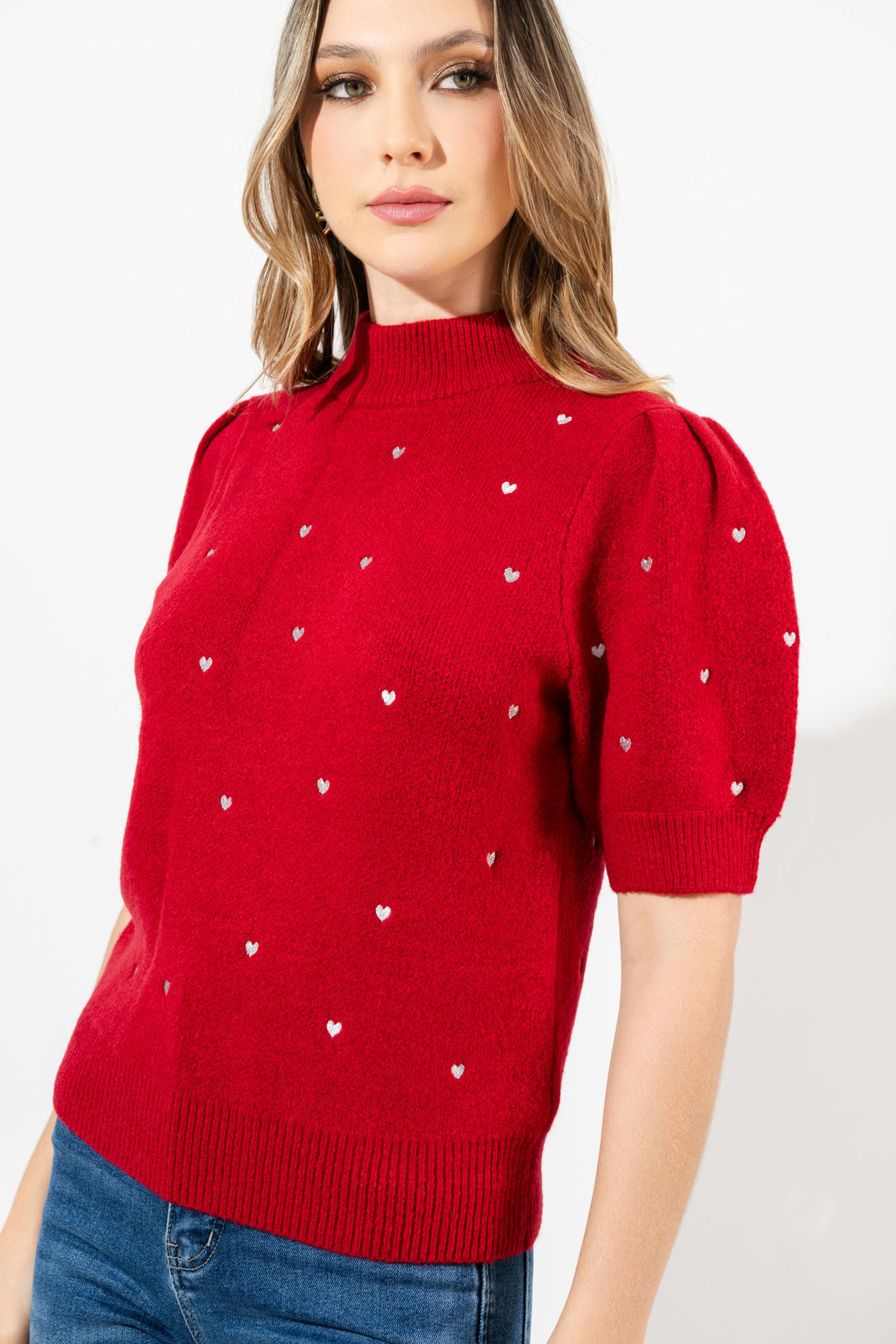 Blusa Print Corazones, Cuello Alto