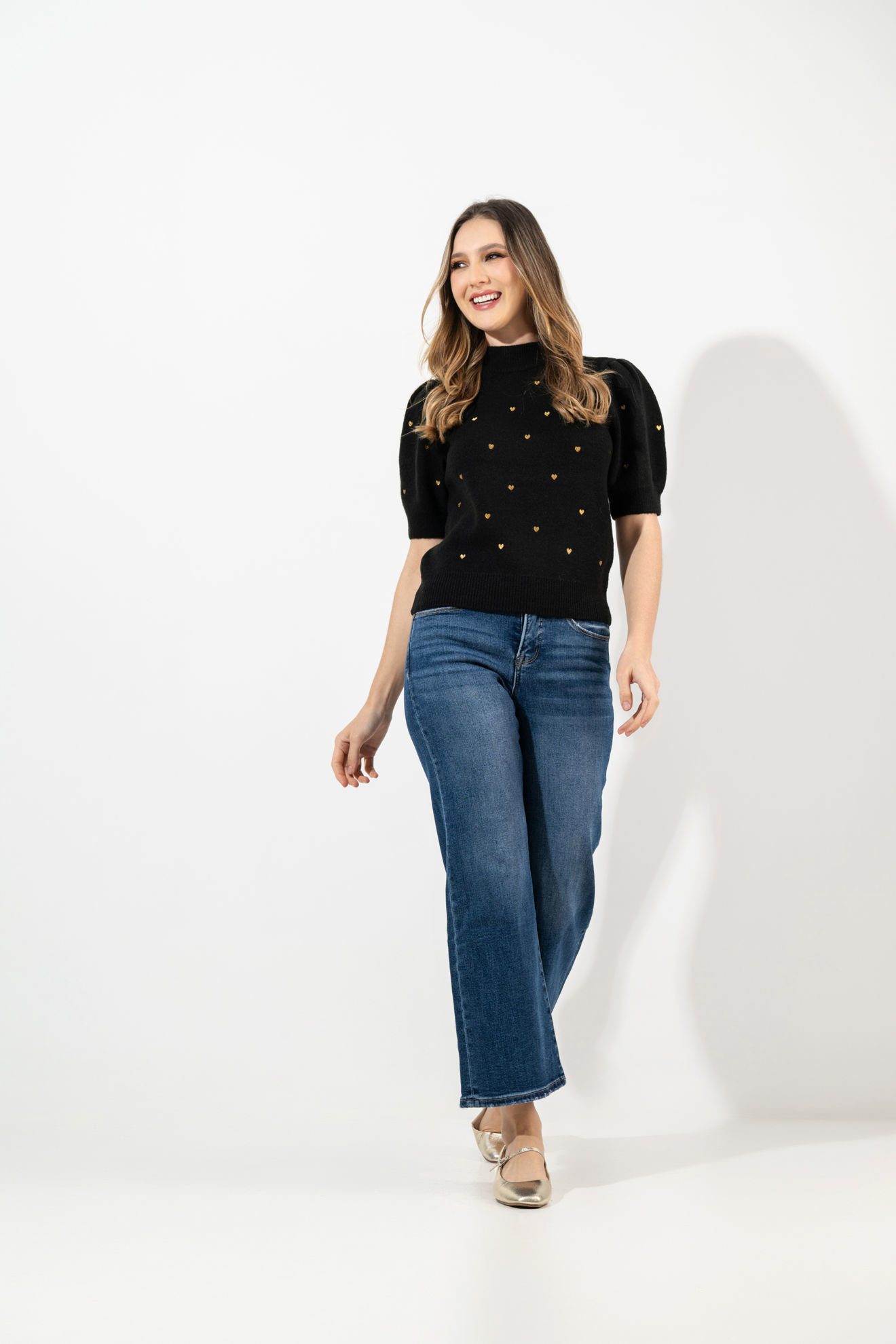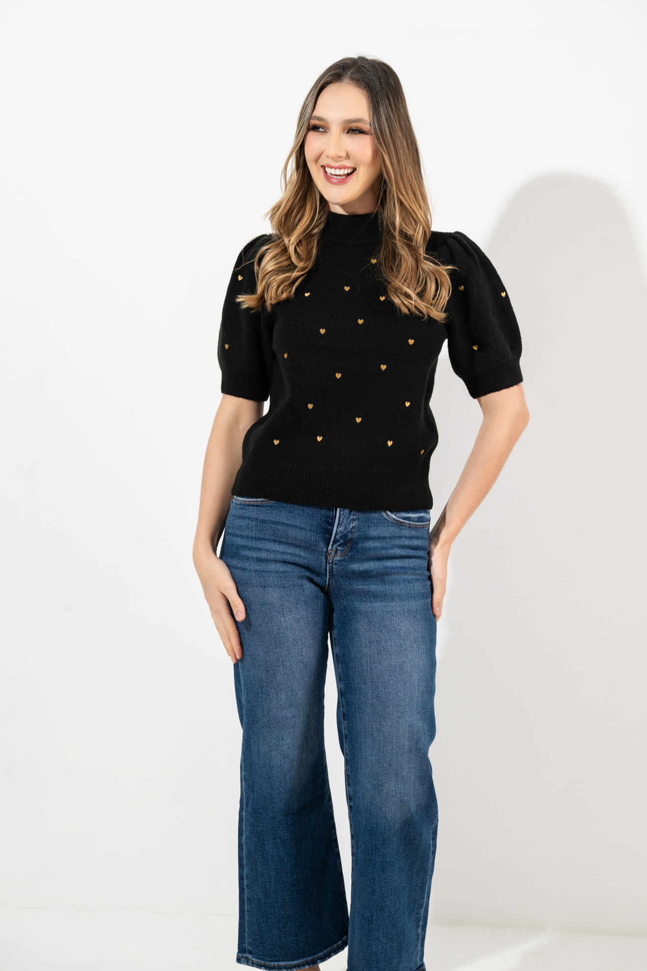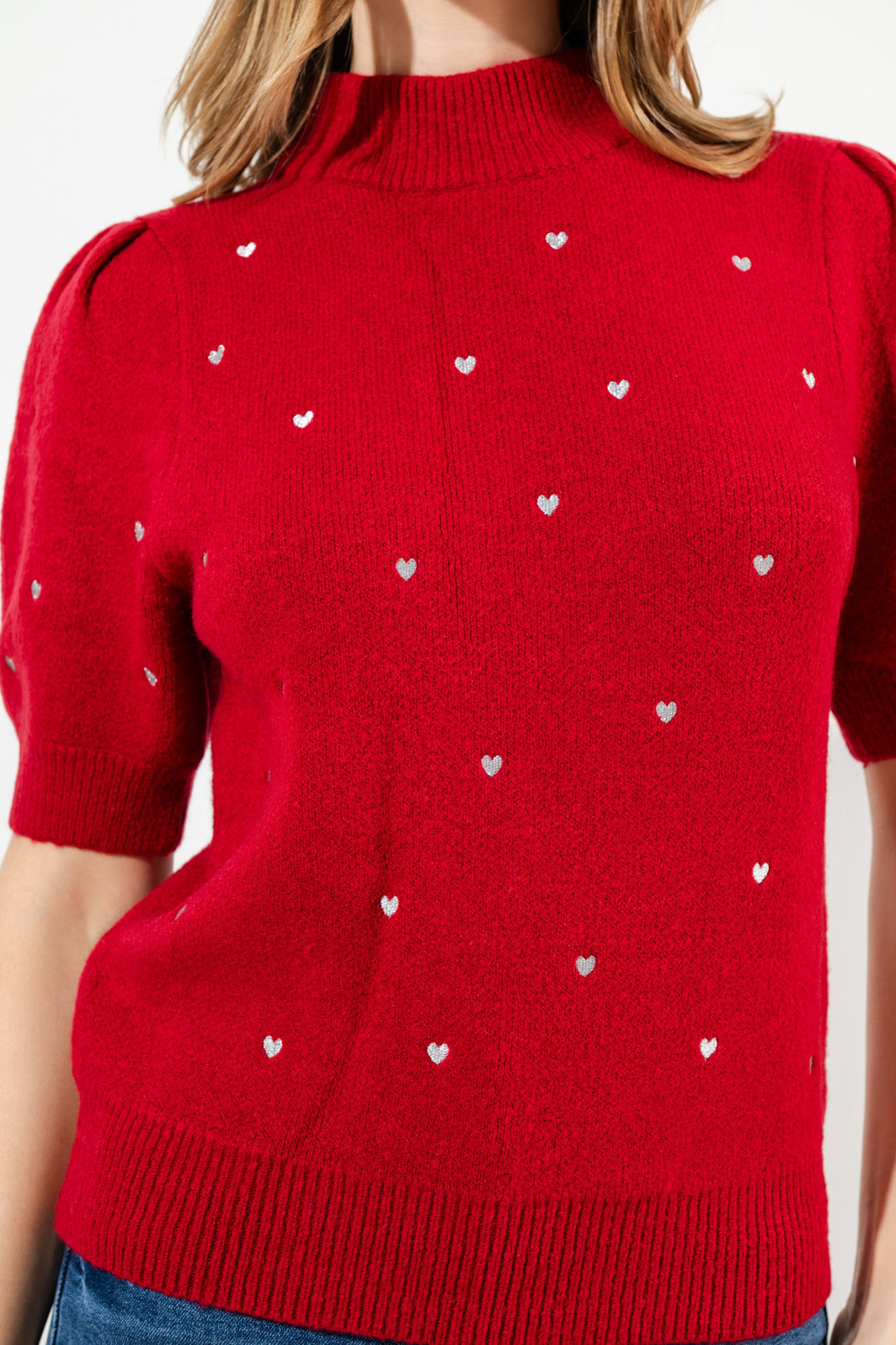 Blusa Print Corazones, Cuello Alto