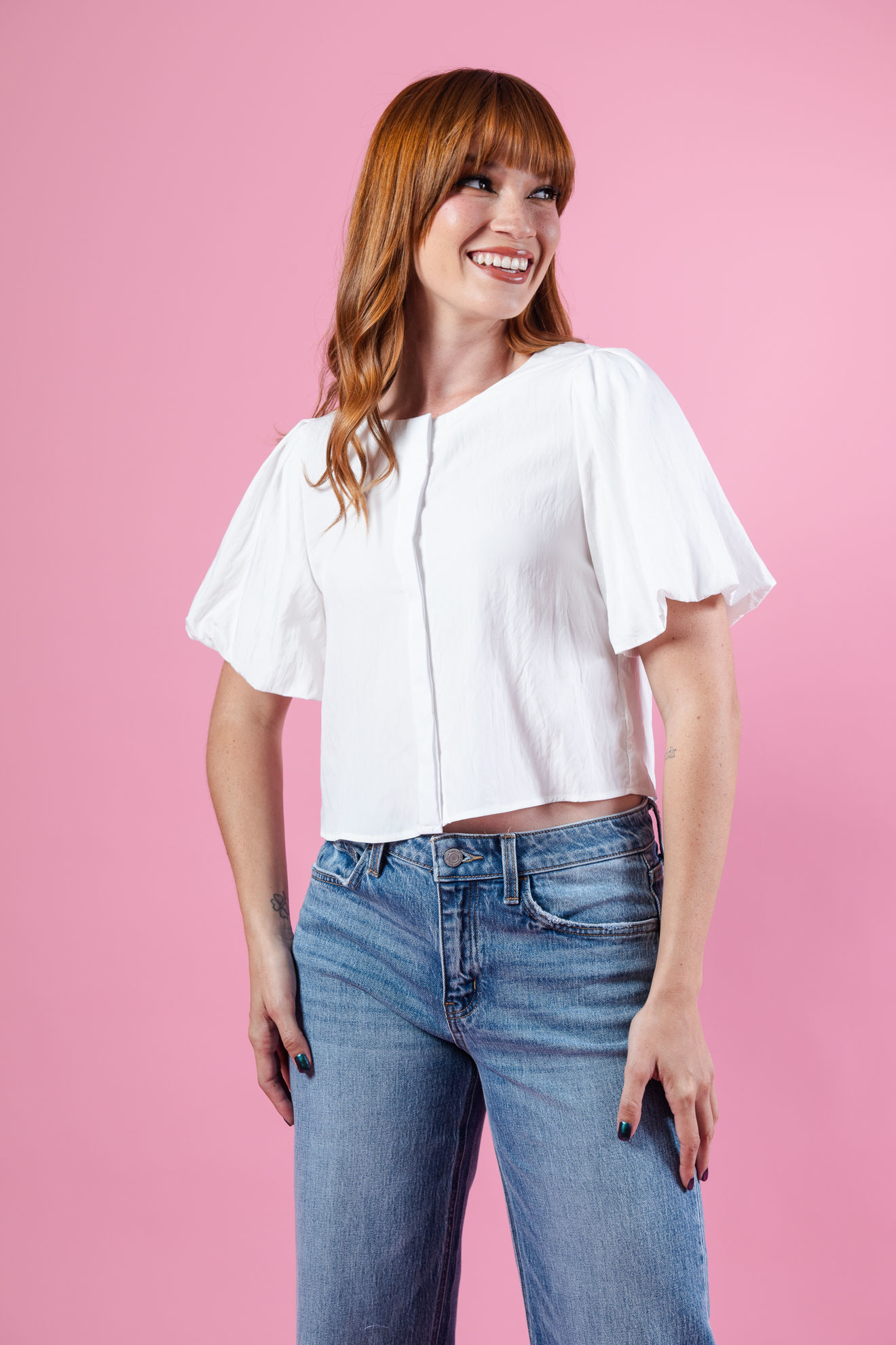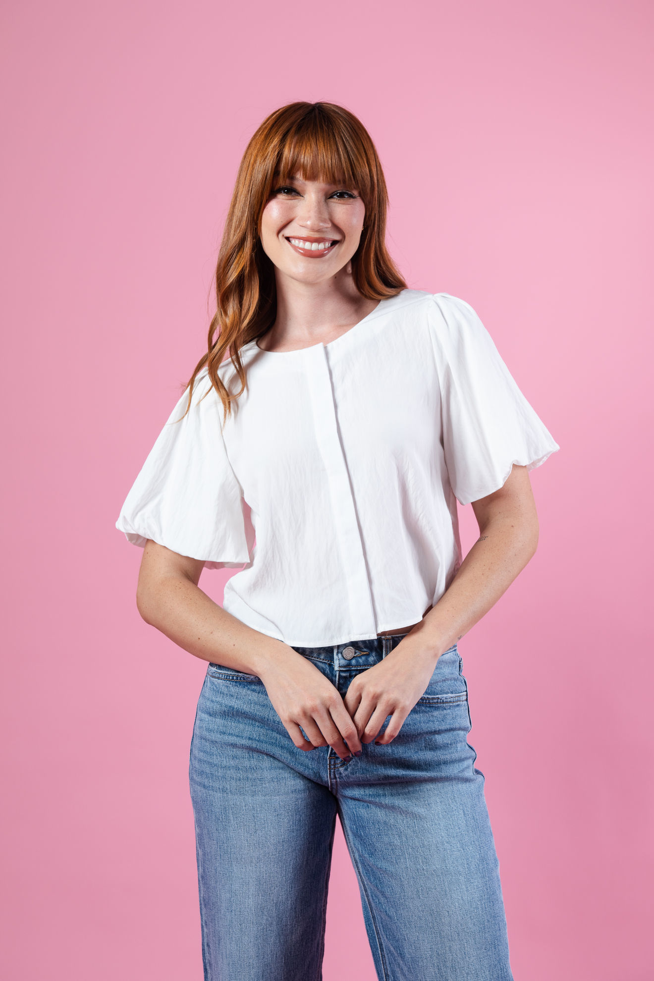 Blusa Mangas Balloon Cuello Redondo