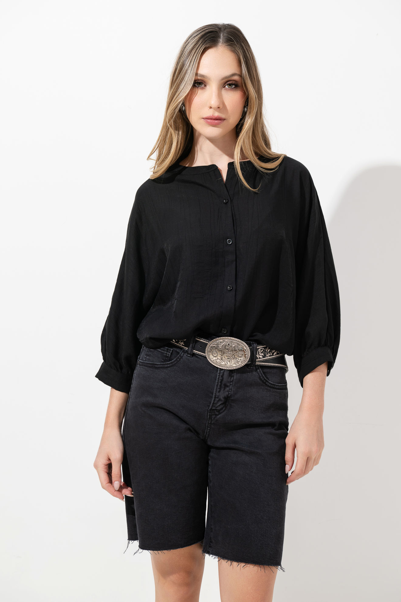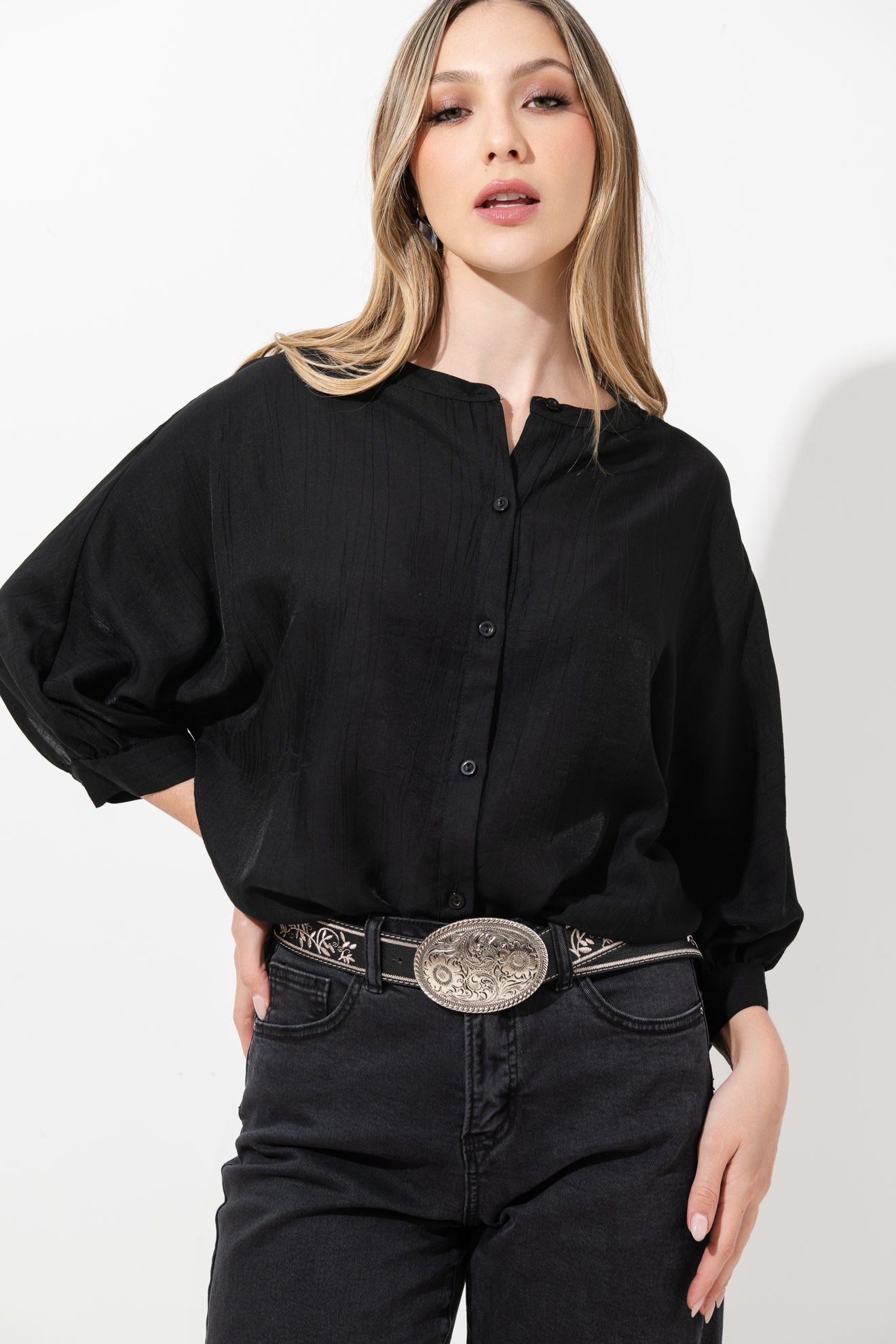 Blusa Cuello Chino, Manga 3/4