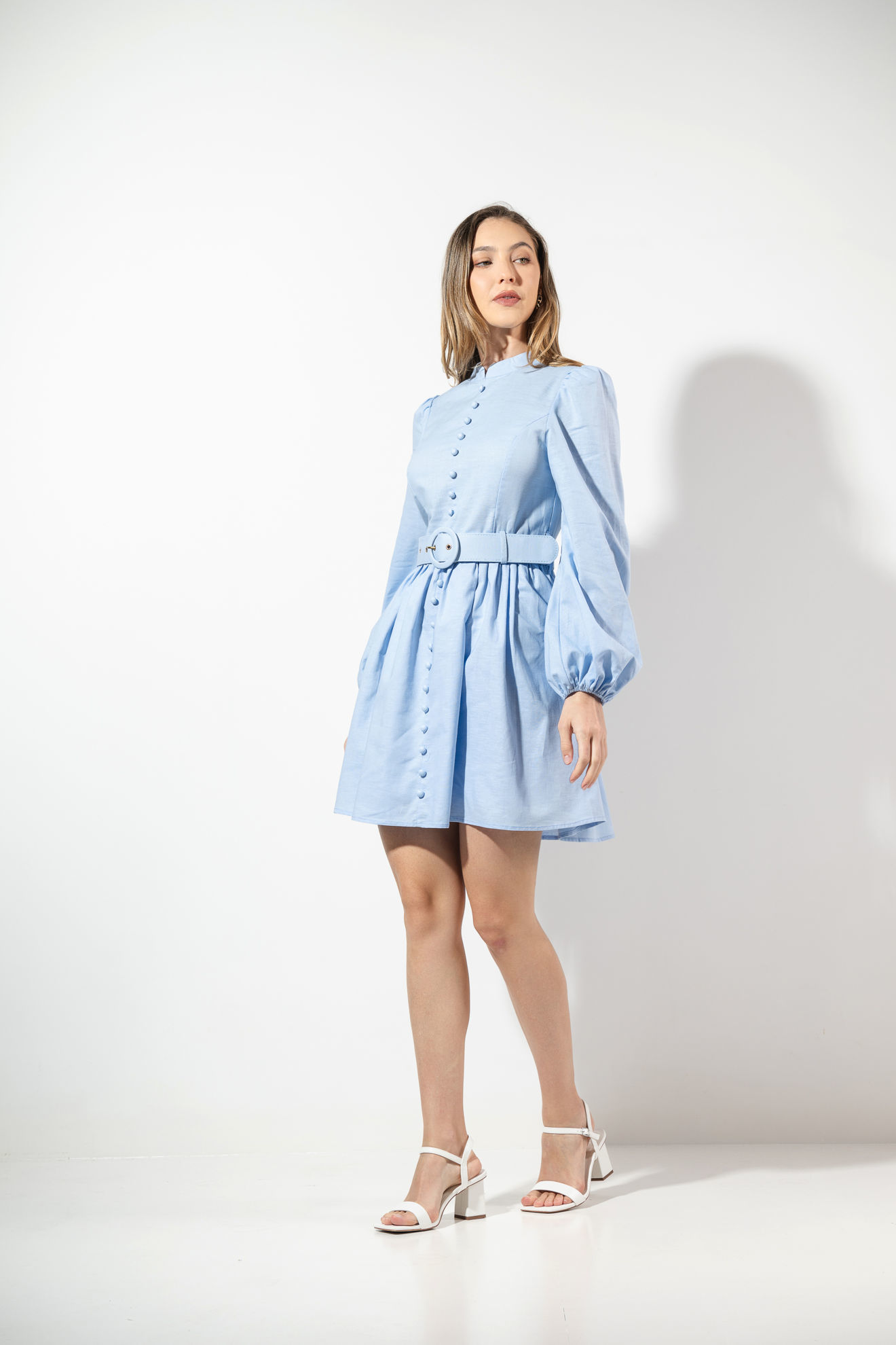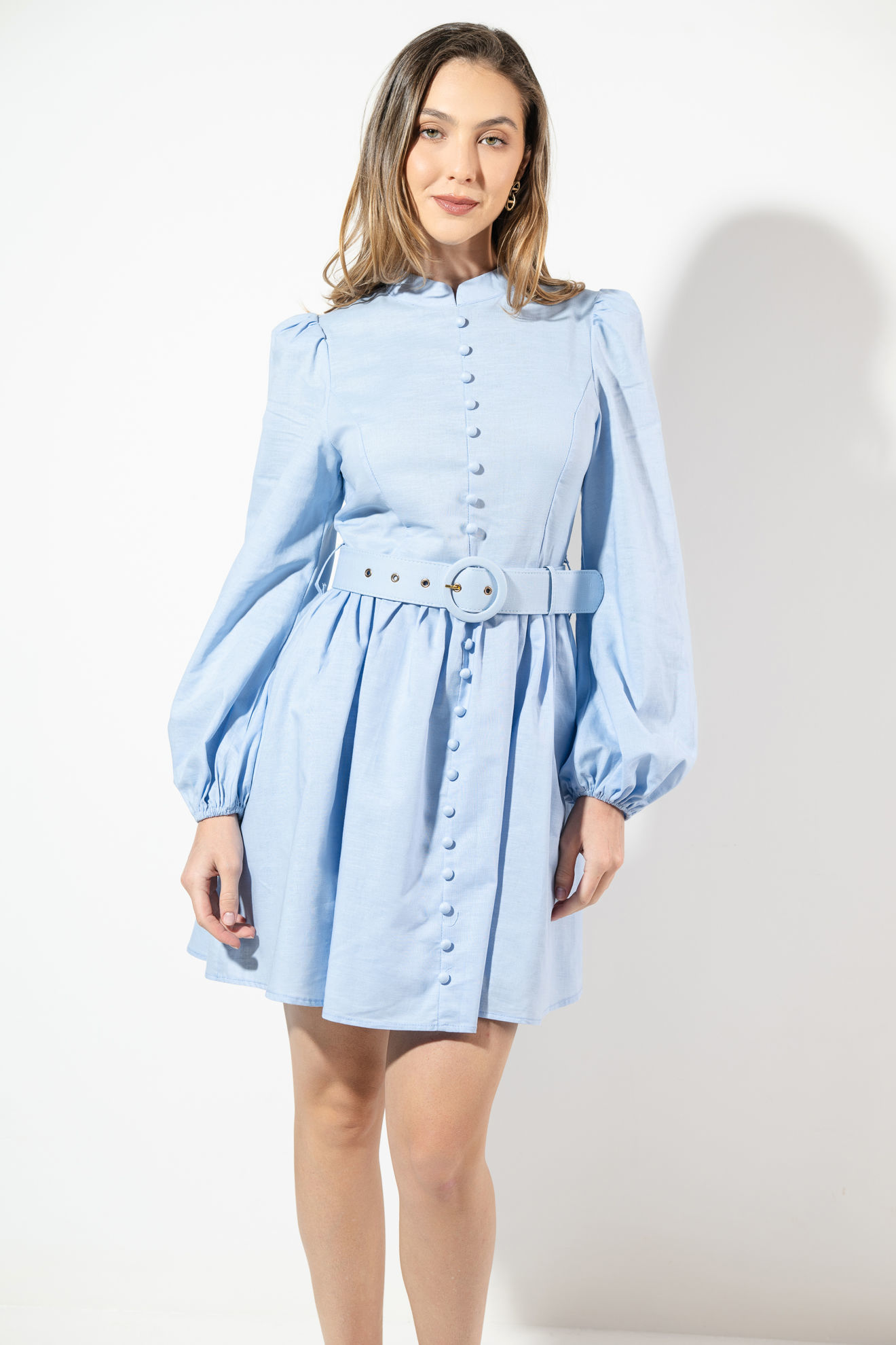 Vestido Manga Larga Con Cinturon, Botones Decorativos