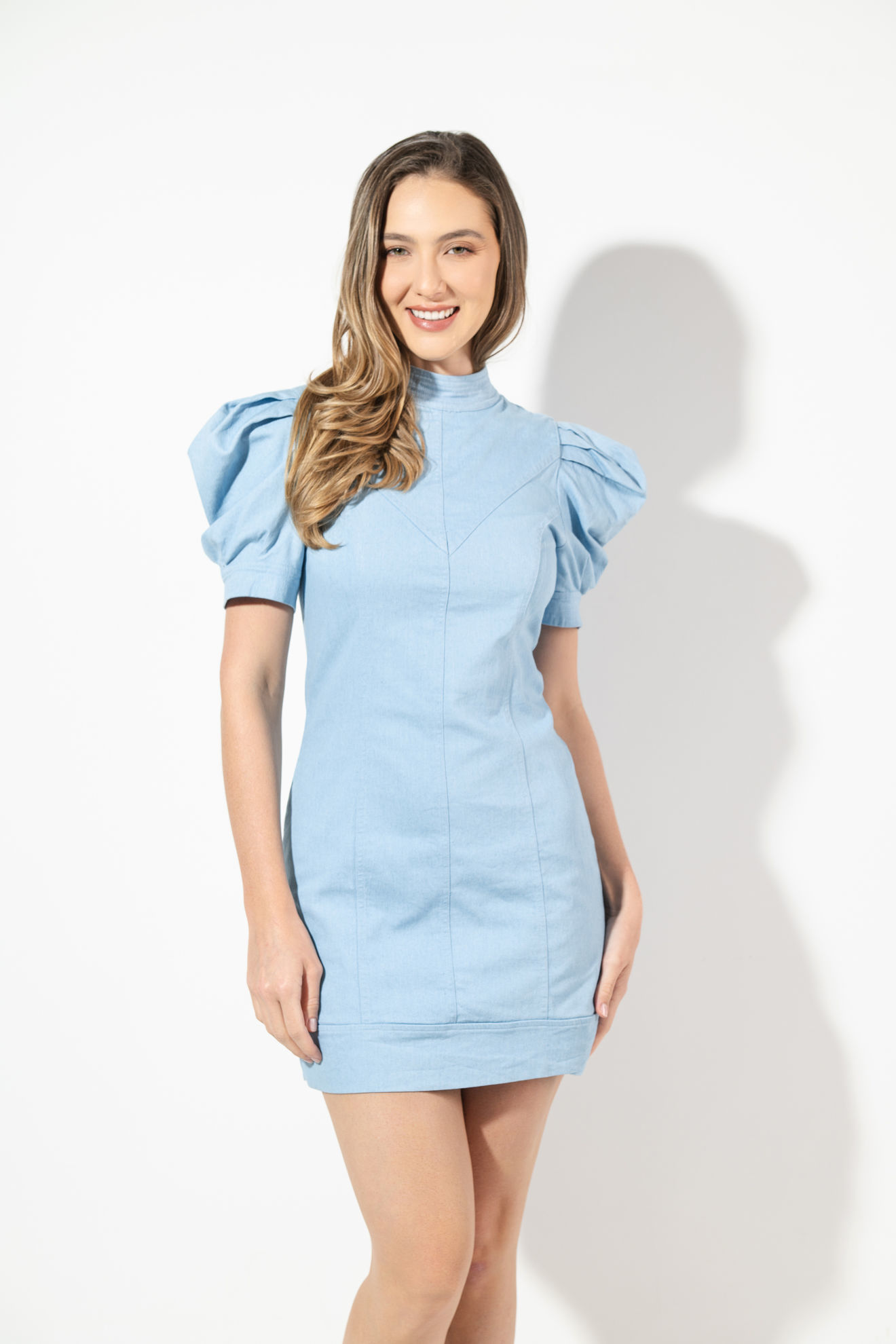 Vestido En Denim Cuello Alto