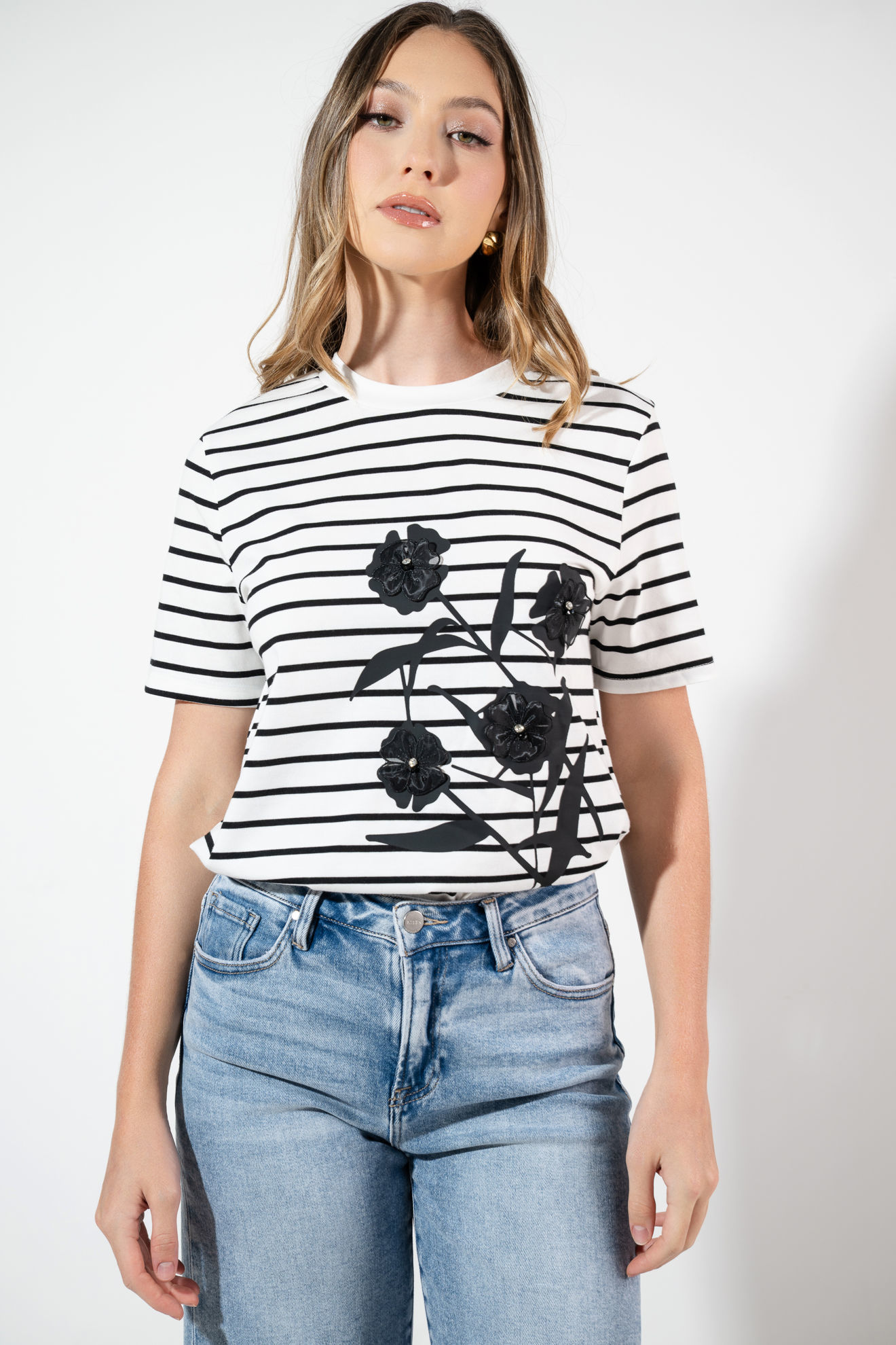 T Shirt En Rayas Con Flores
