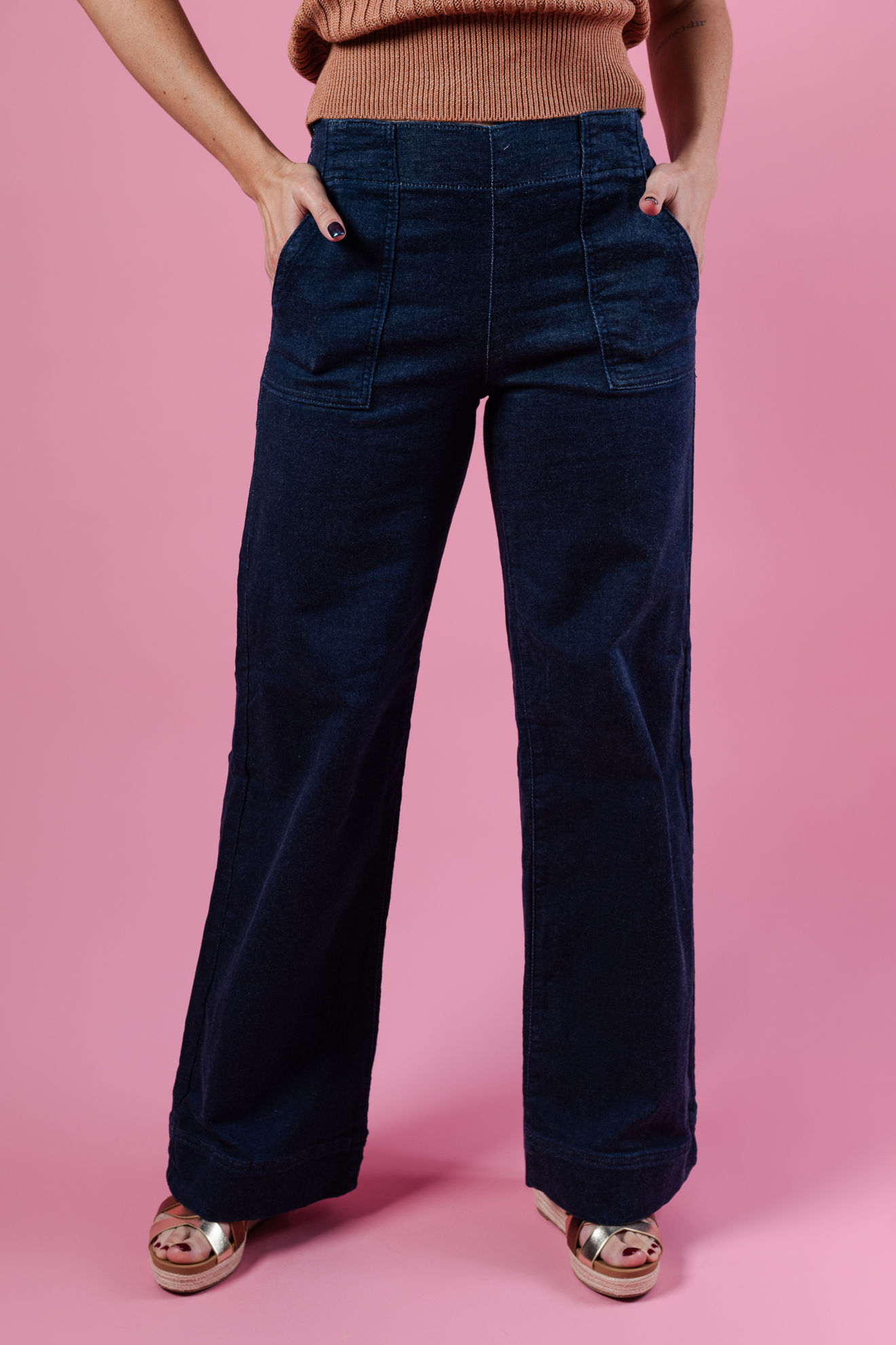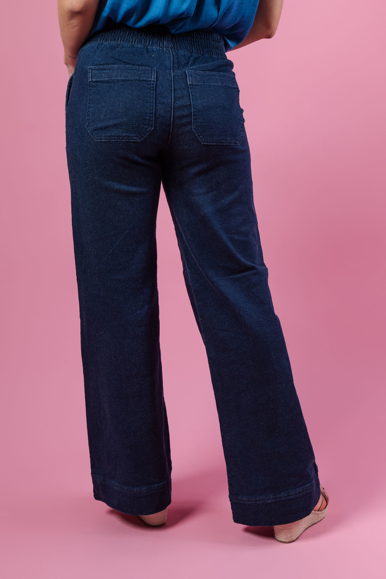 High Rise Straight Leg, Elastico Cintura Trasera Jeans