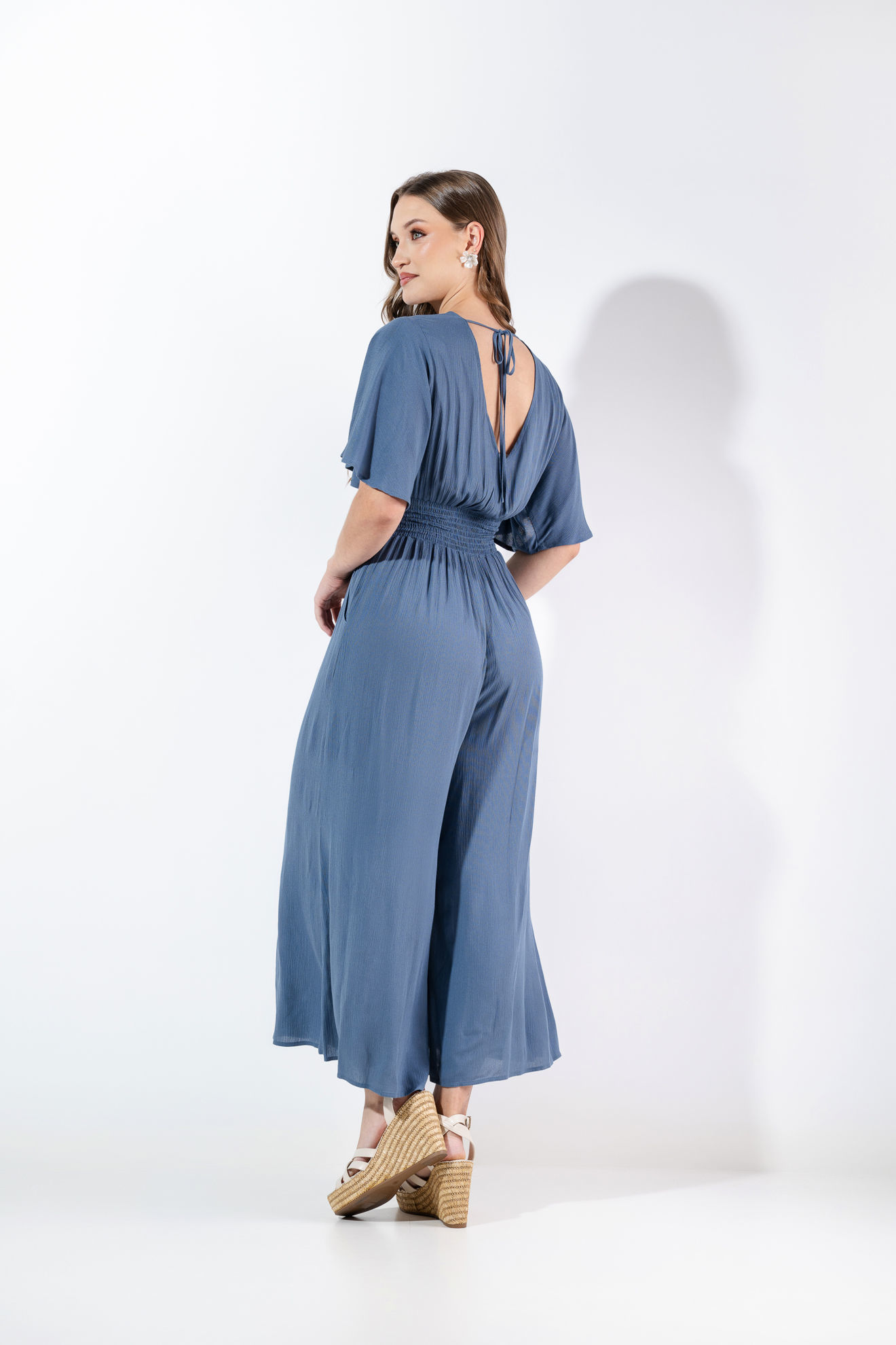 Jumpsuit En Rayon Manga Quimona, Cuello V