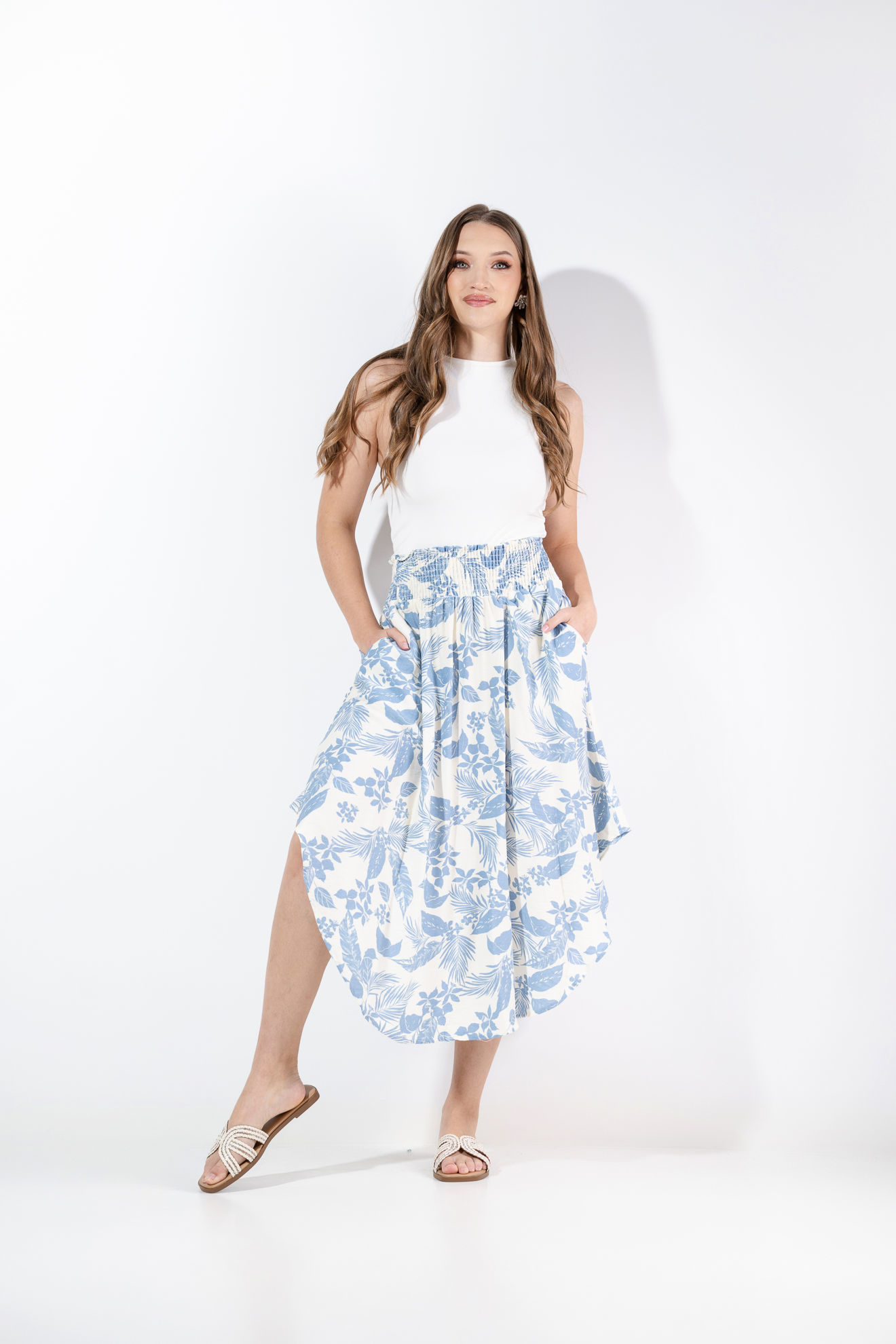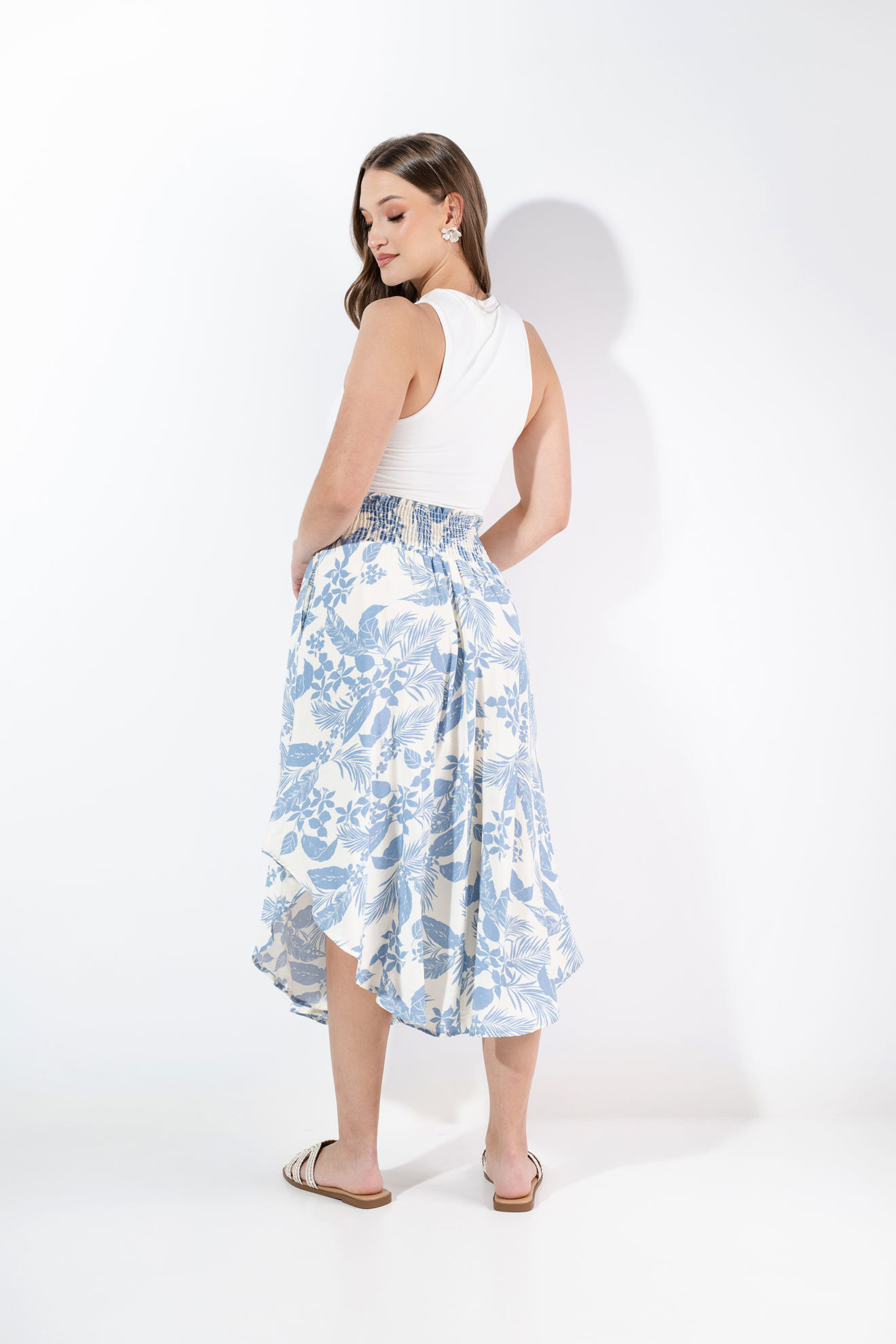 Falda En Rayon Print Floral Elastico Cintura