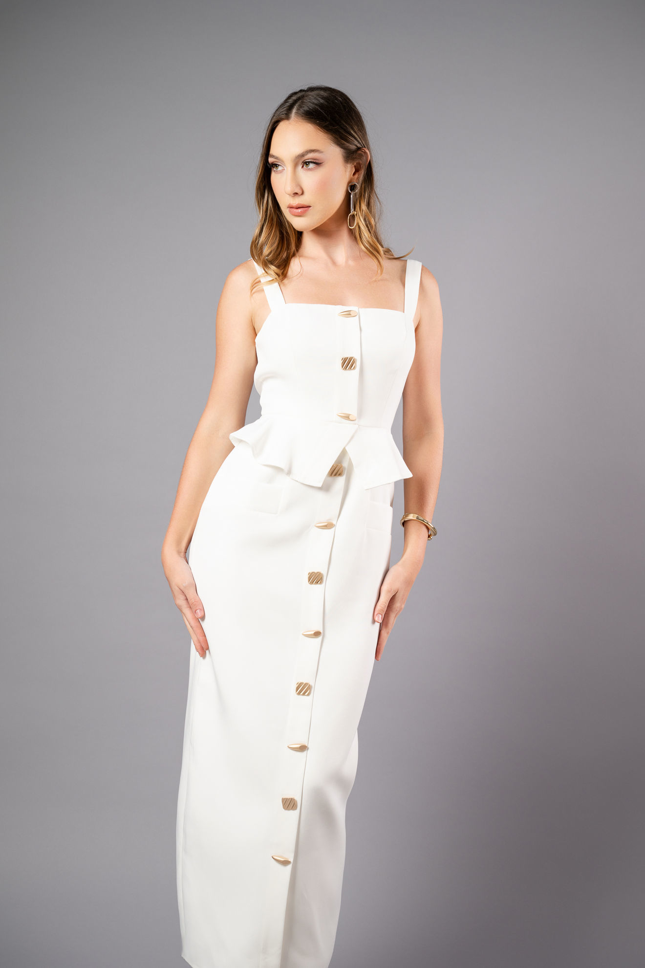 Vestido Estilo Peplum Botones Decorativos