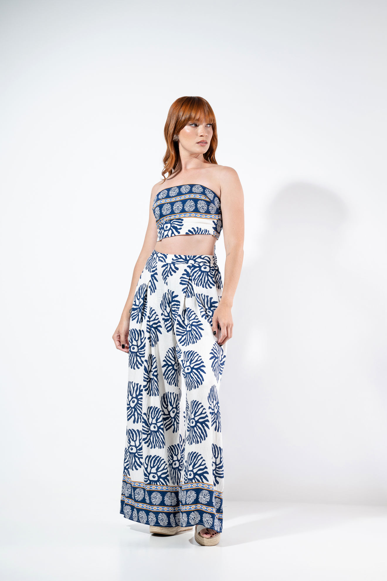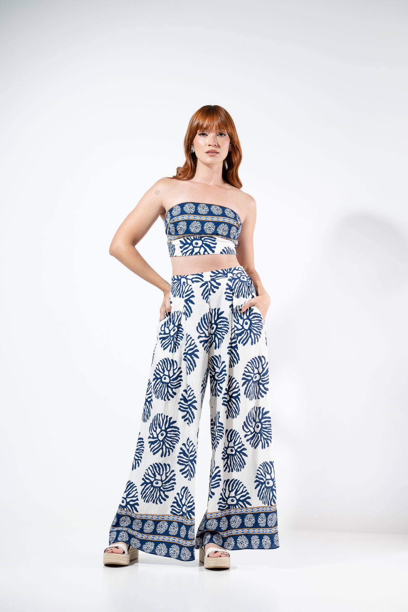 Set Pantalon Crop Top Straple En Rayon Estampado