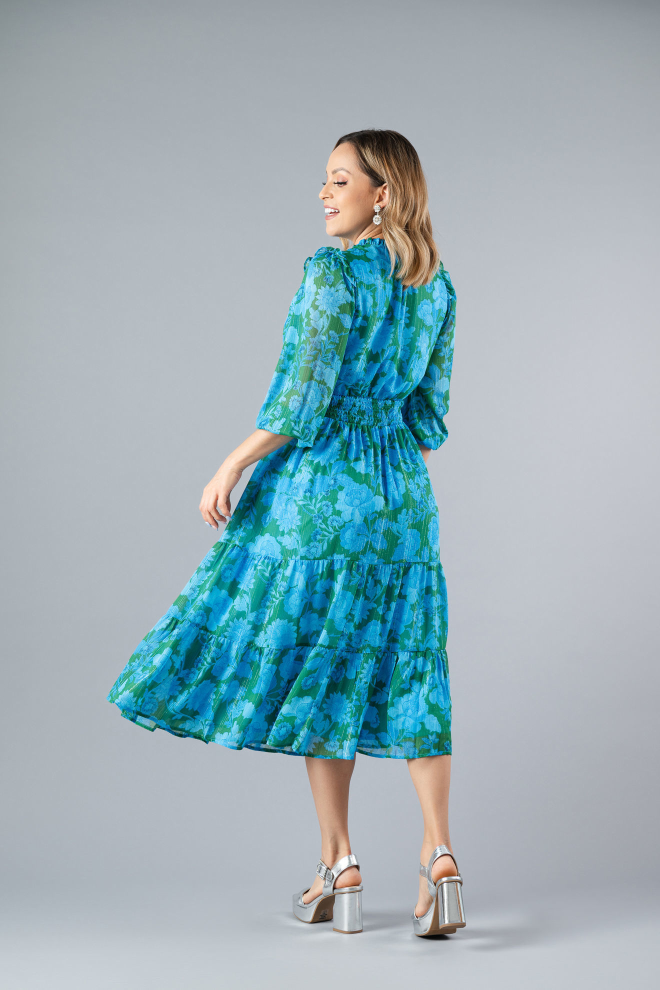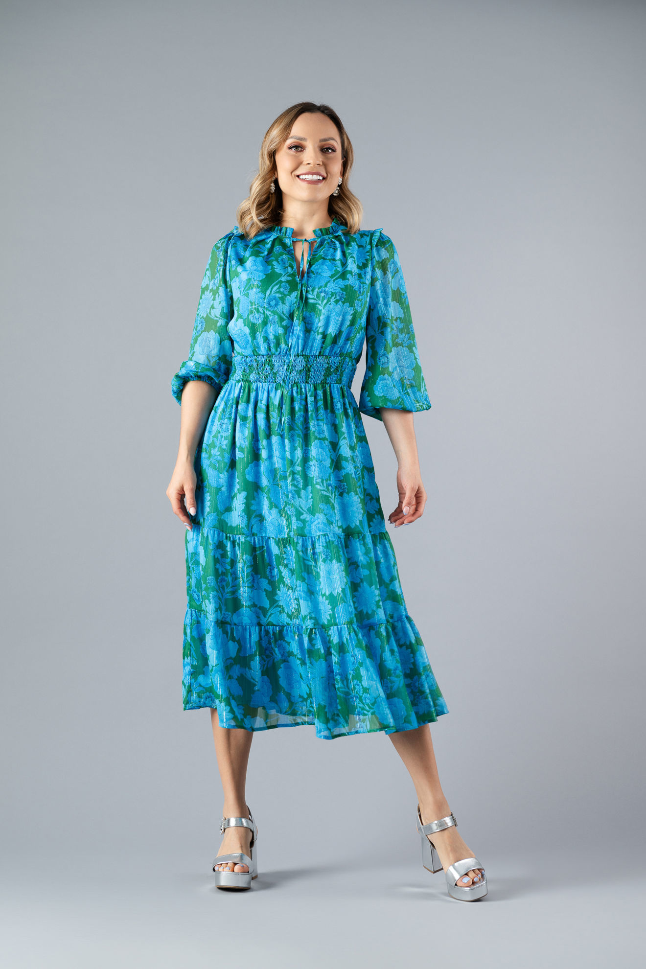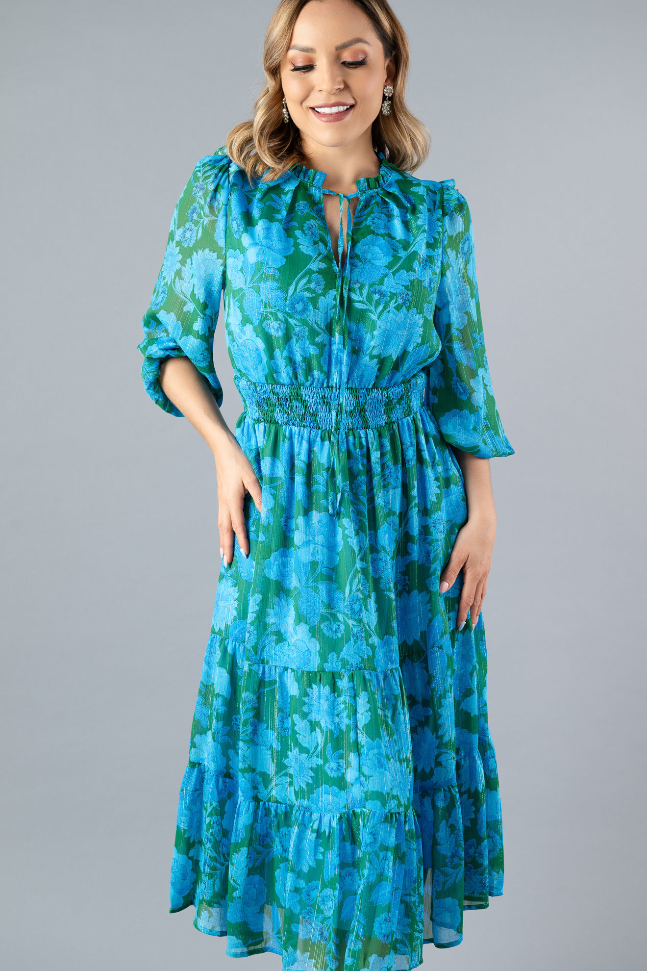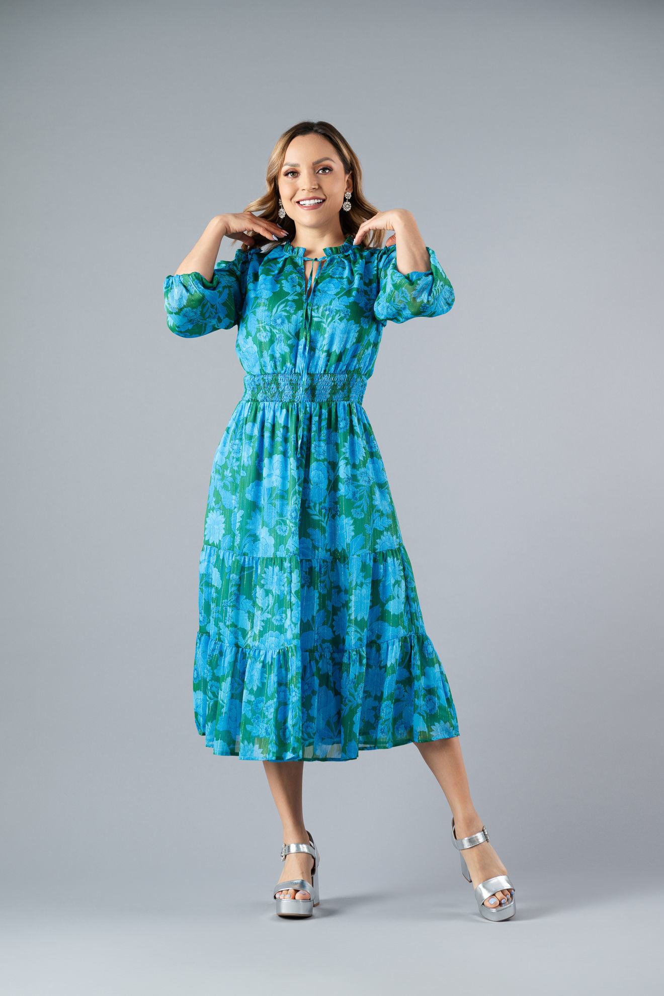 Vestido En Seda Estampado Manga 3/4 (Exclusivo Pagina)