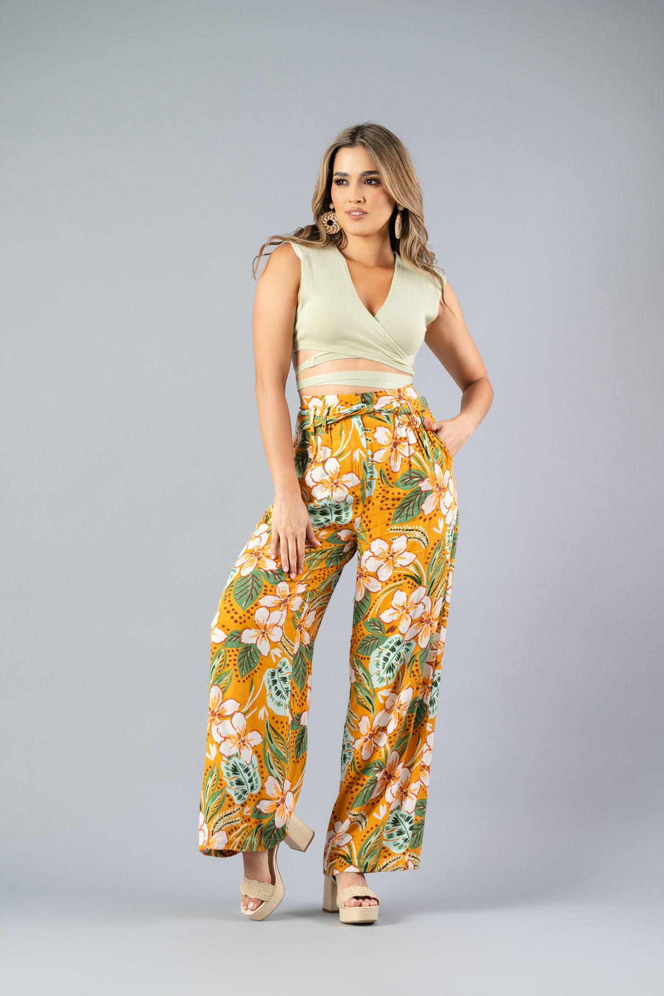 Pantalon En Rayon, Print Tropical ( Exclusivo Pagina)