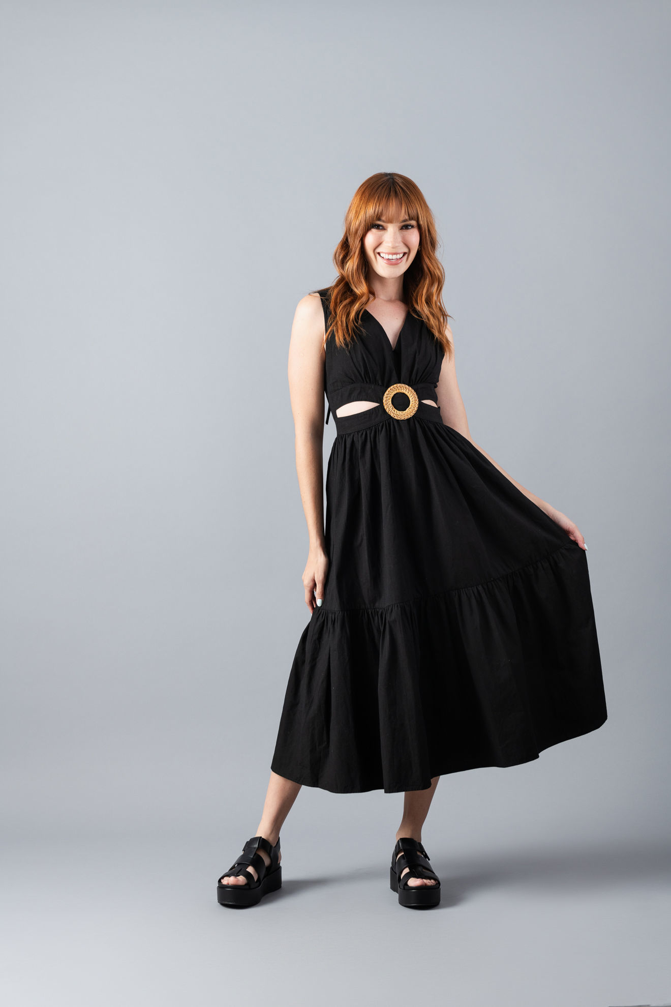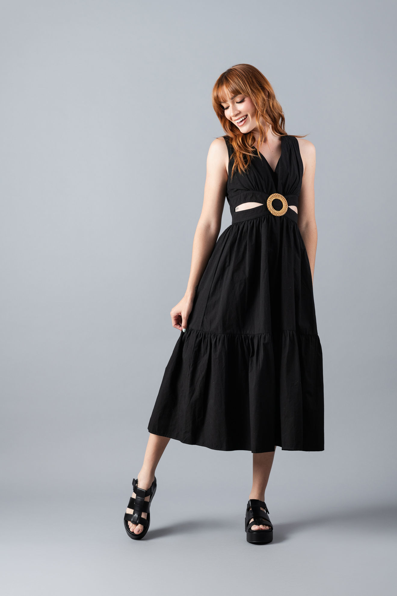 Vestido En Poplin Cuello V Detalle Hebilla ( Exclusivo Pagina)