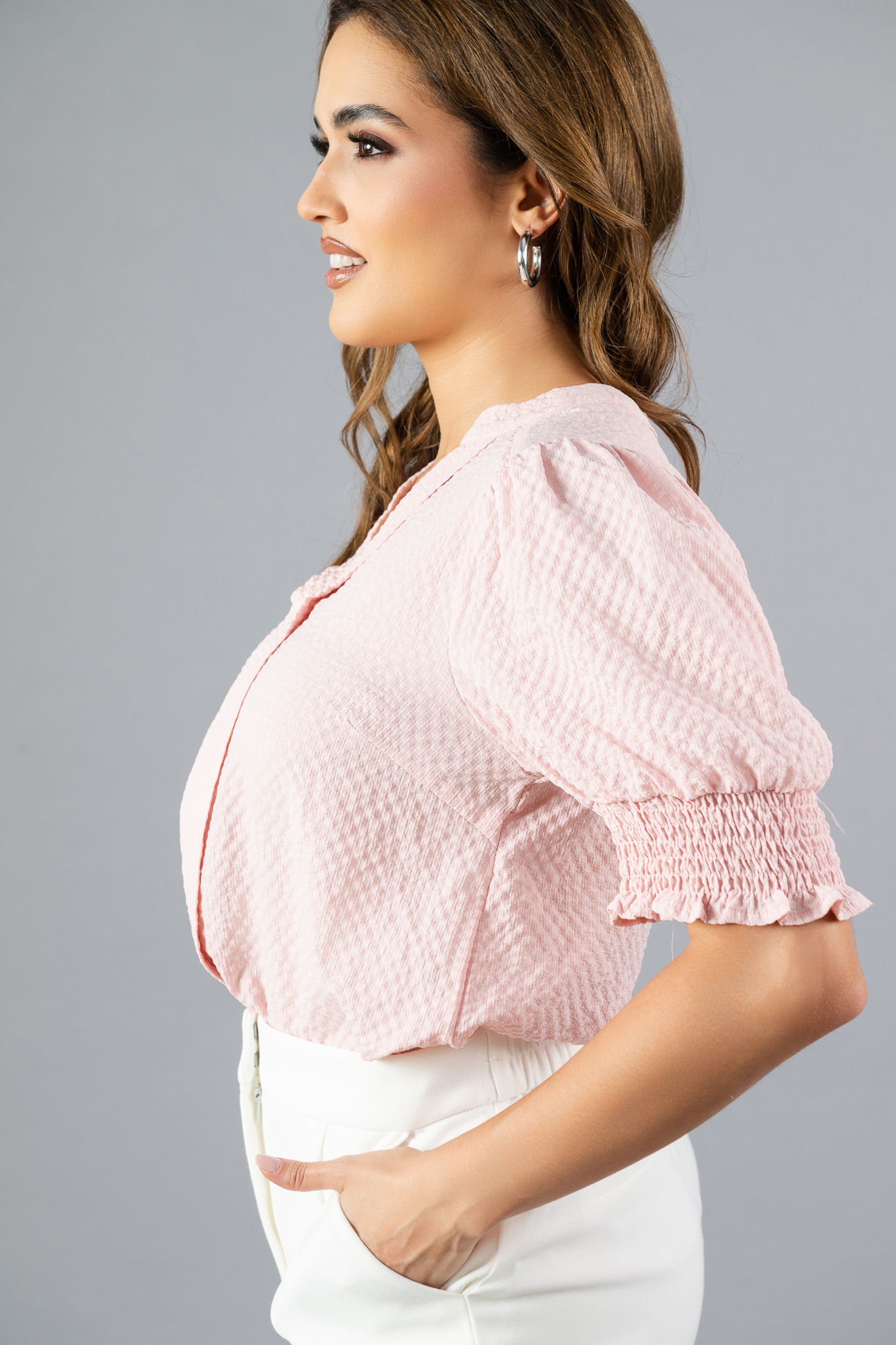 Blusa Cuello V, Manga Elastico ( Exclusiva Pagina)