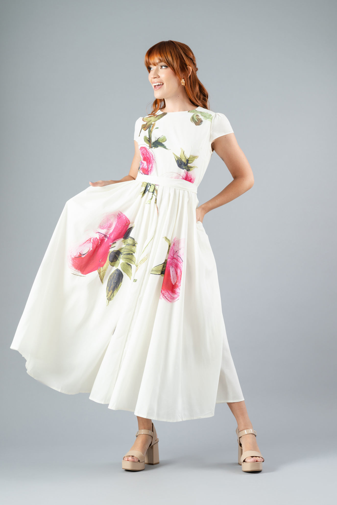 Vestido Print Floral, Manga Corta