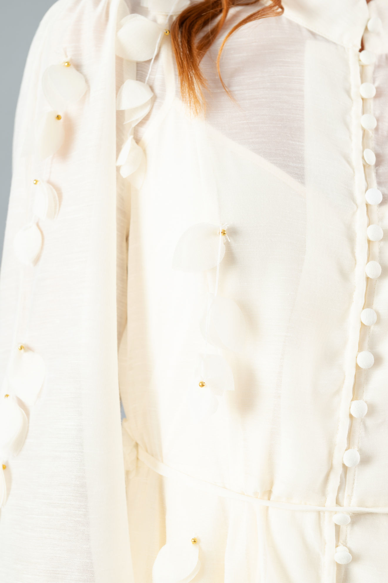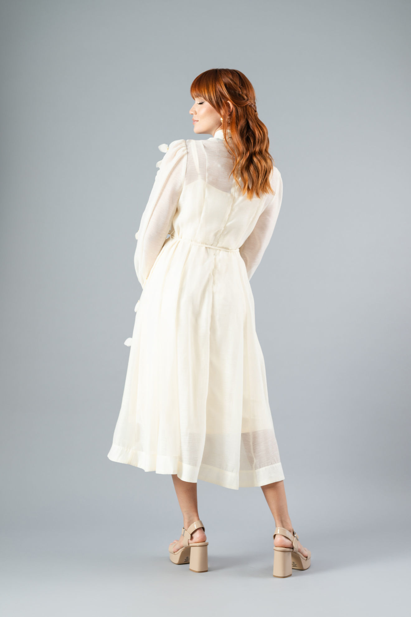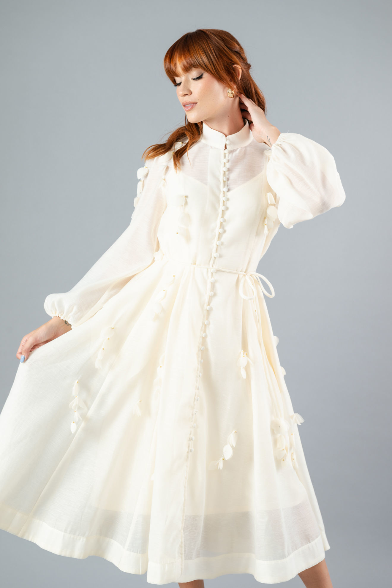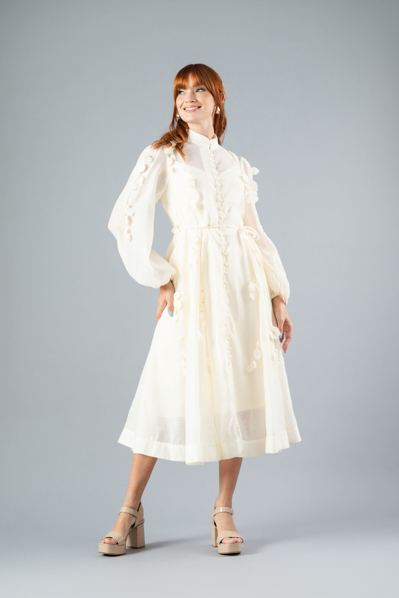 Vestido Manga Larga, Botones Forrados, Cuello Chino