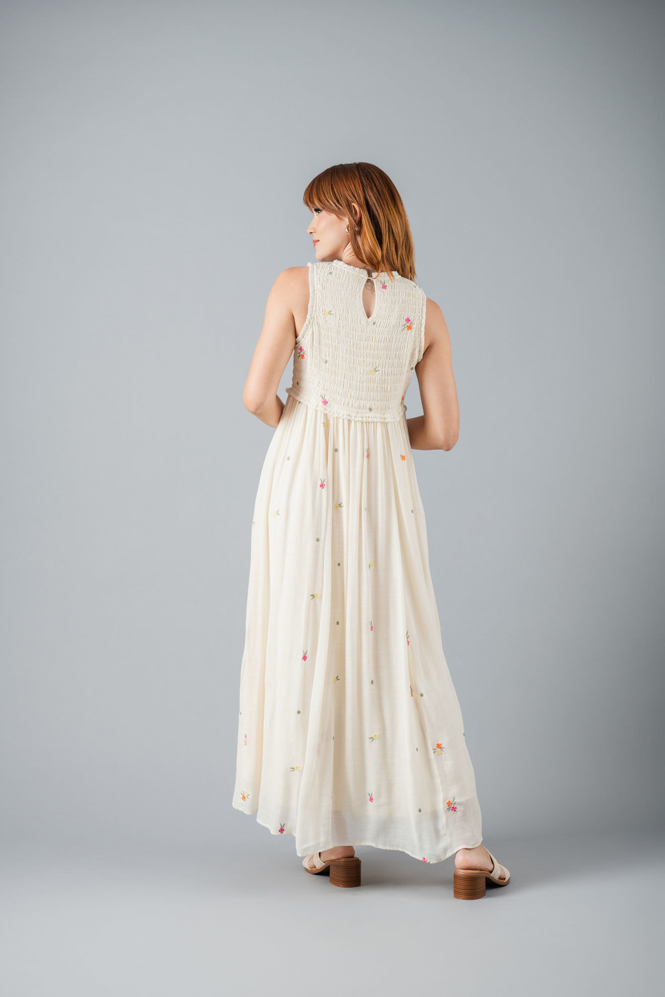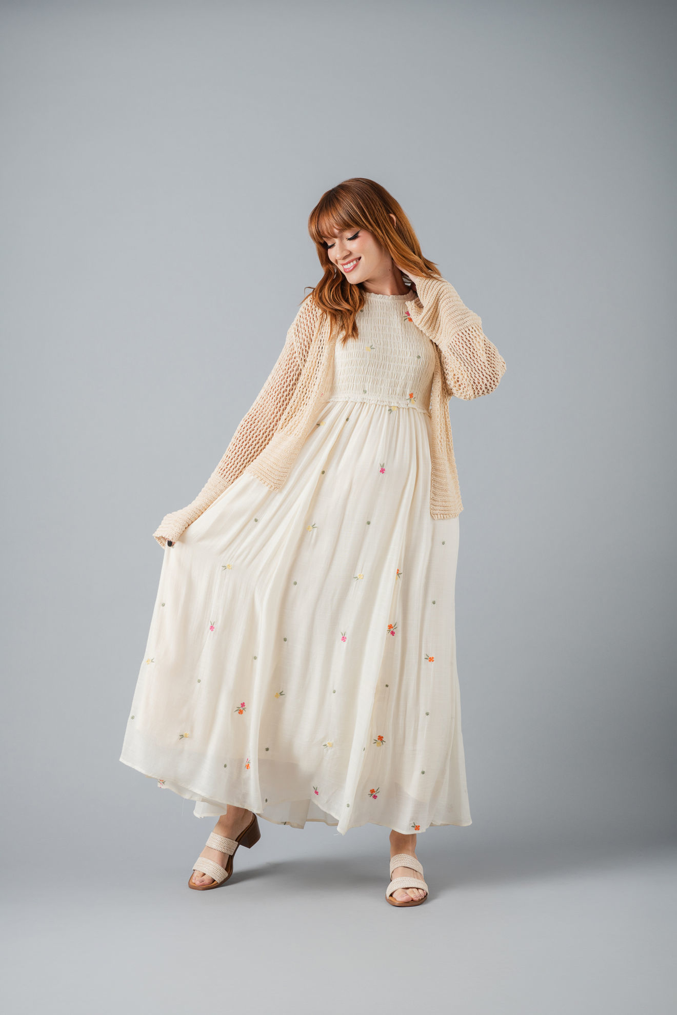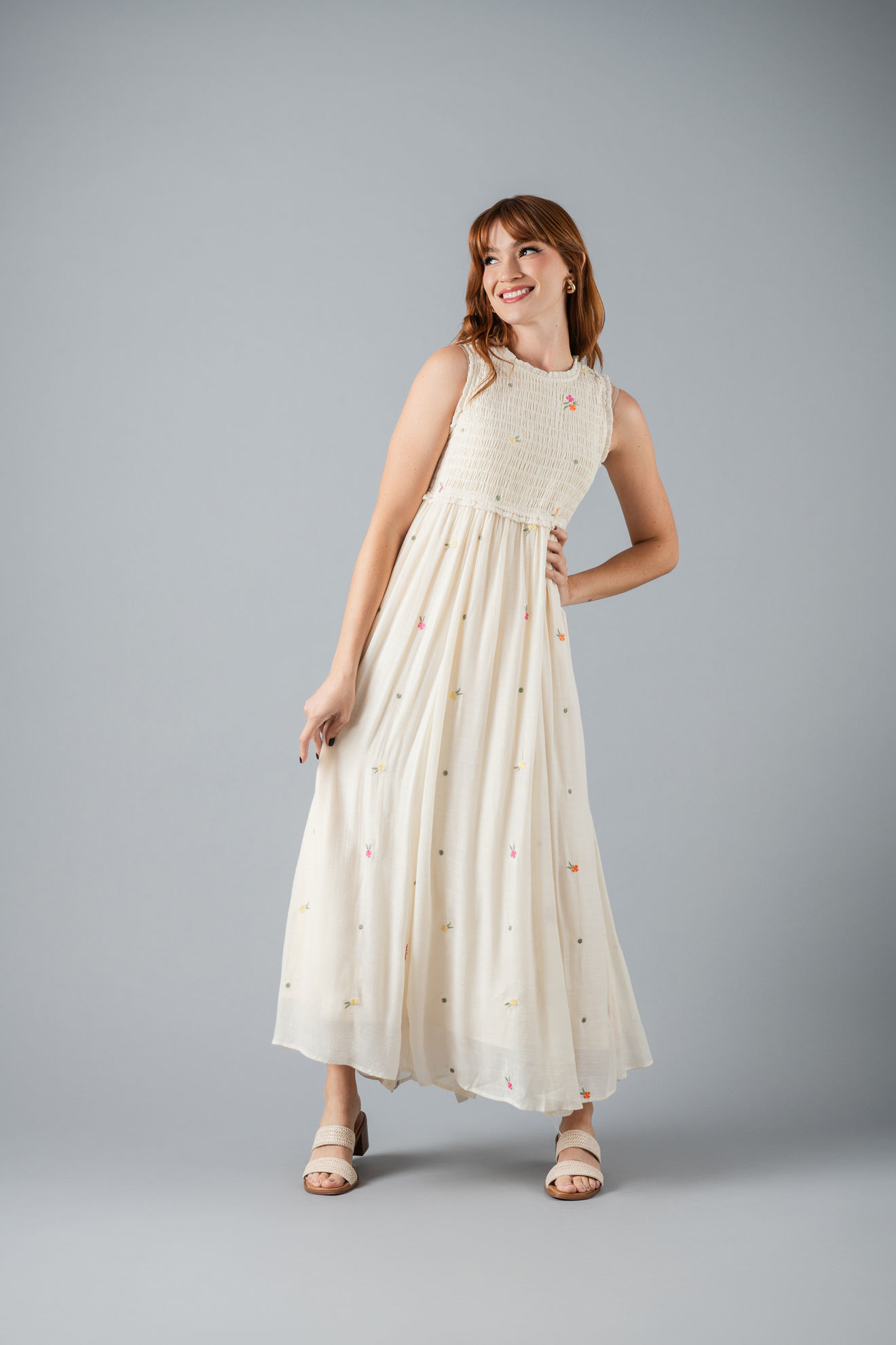 Vestido En Rayon Blusa Nido De Abeja Con Bordado ( Exclusivo Pagina)