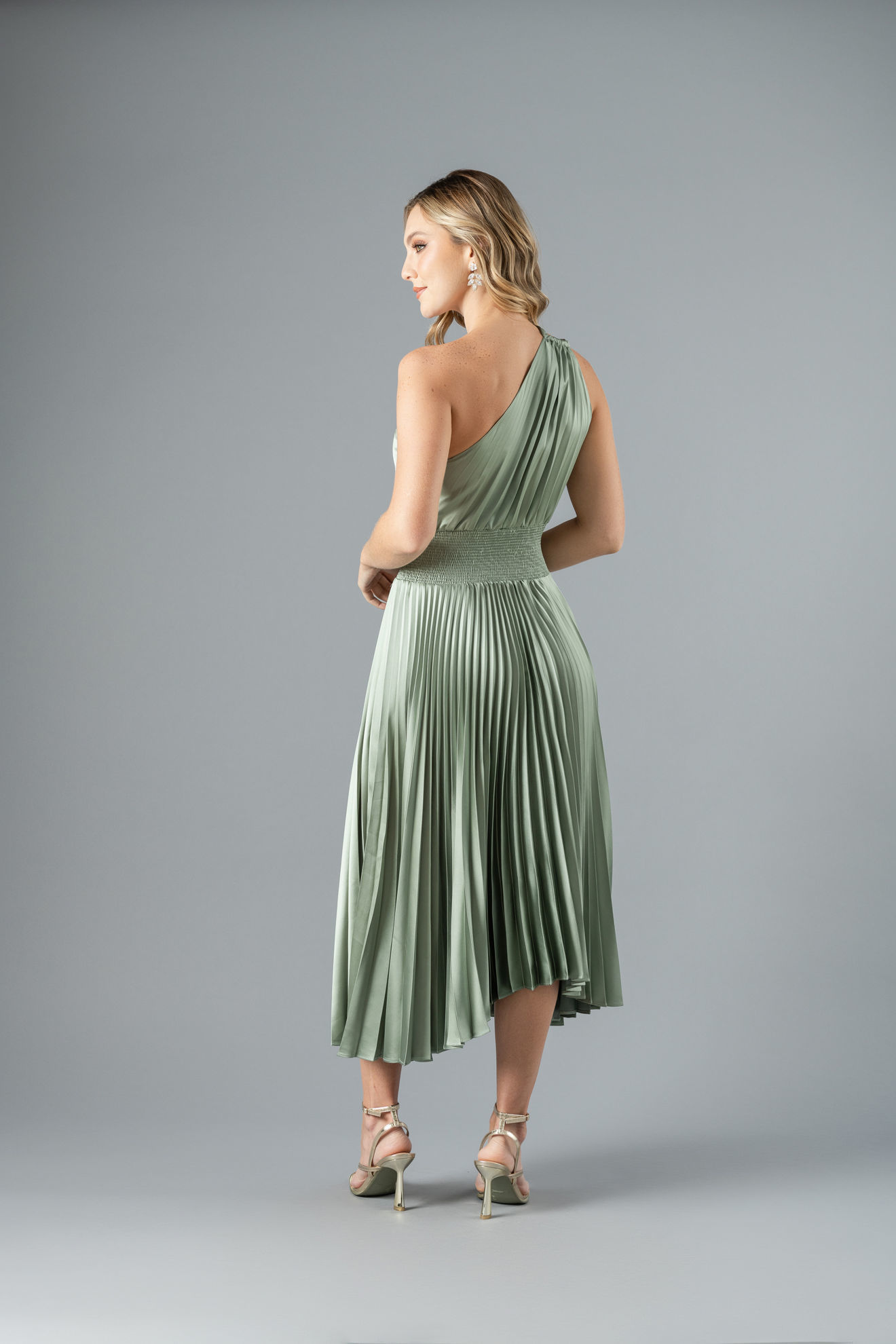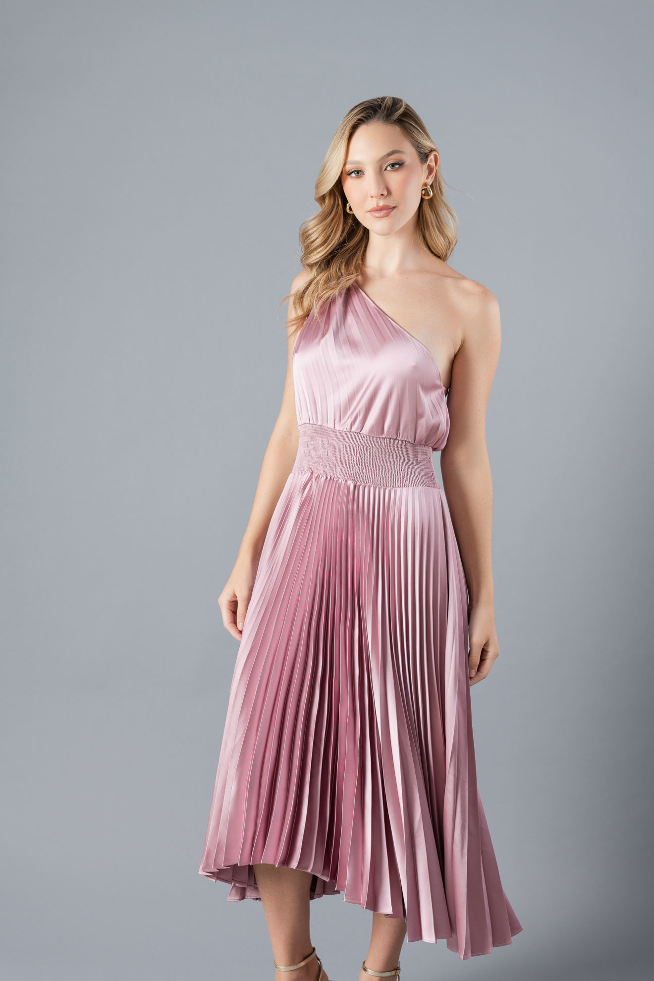 Vestido En Satin Un Hombro, Falda Plisada (Exclusivo Pagina)