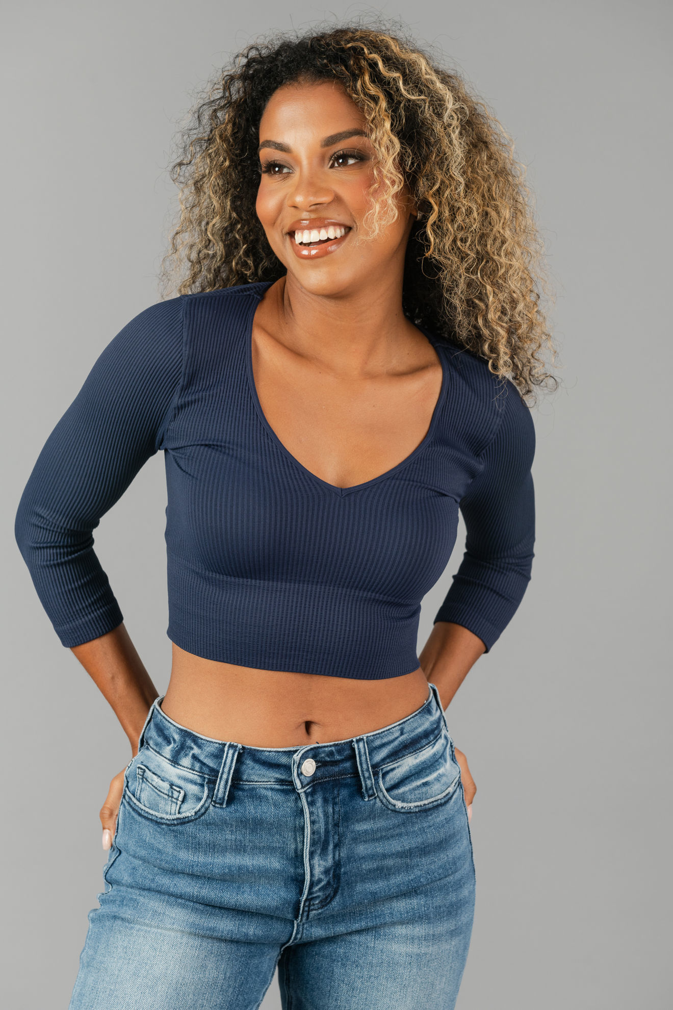 Crop Top Manga 3/4 Cuello V (Exclusivo Pagina)