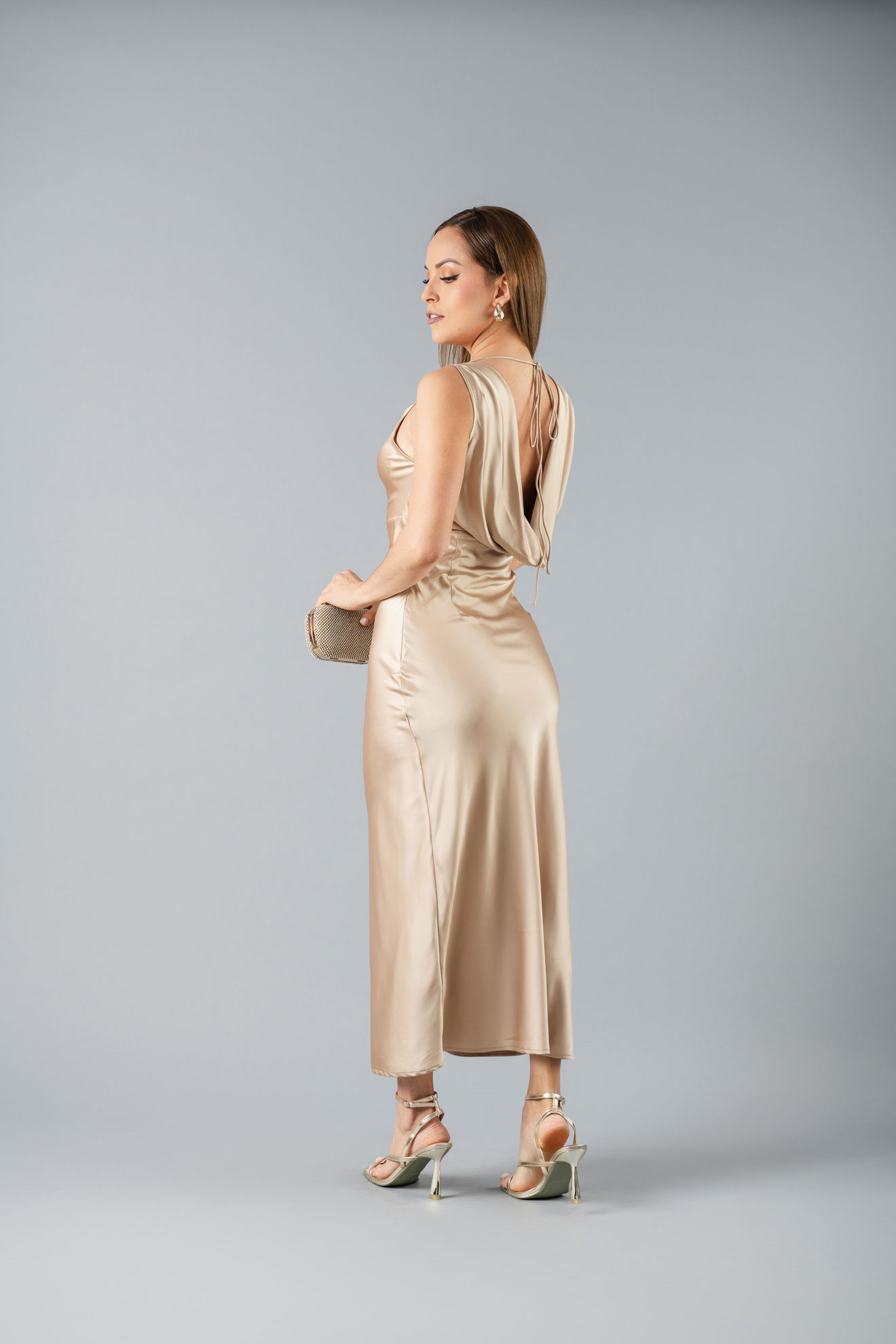 Vestido Satin Cuello Bobo, Espalda Baja (Exclusivo Pagina)