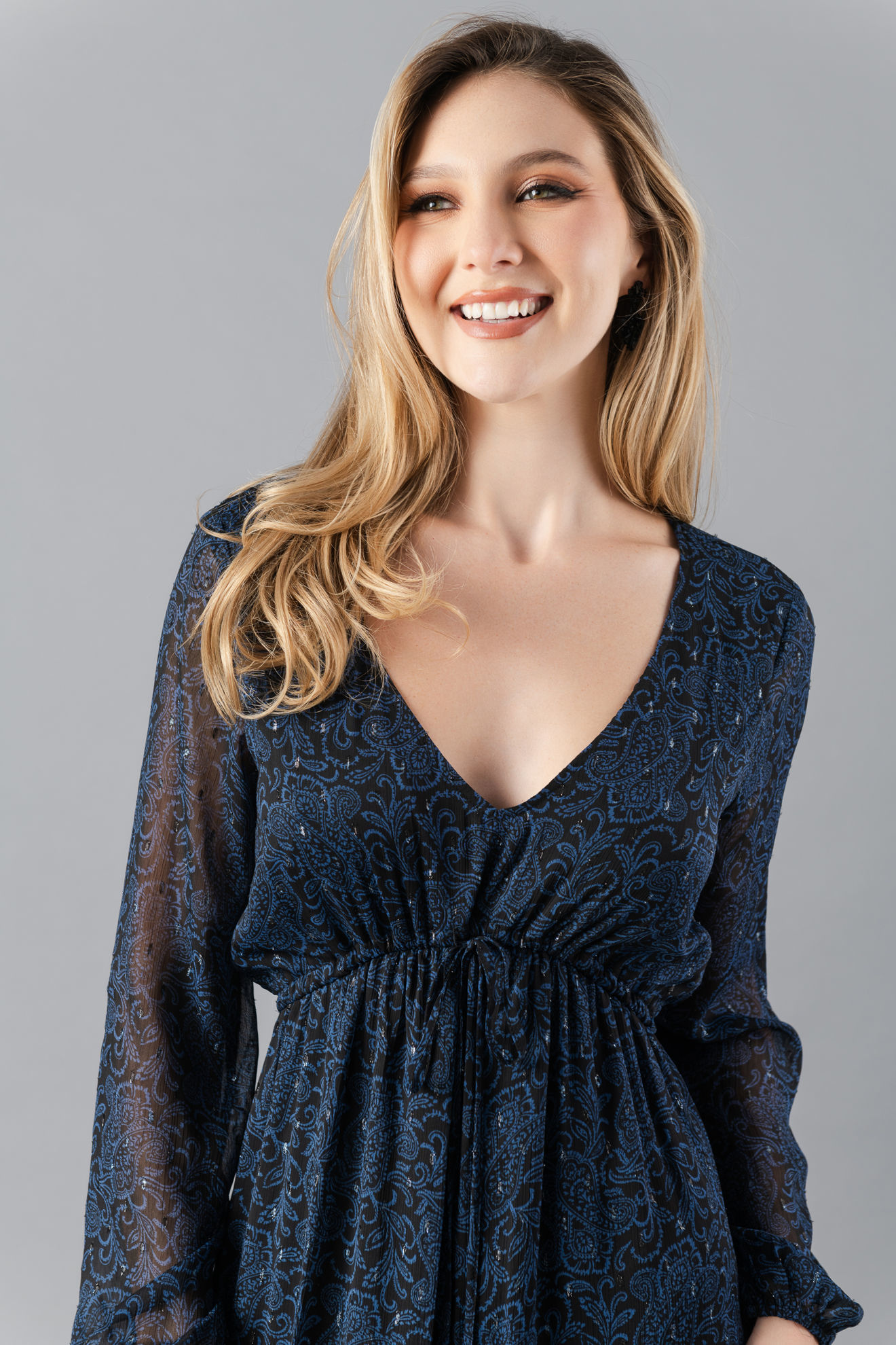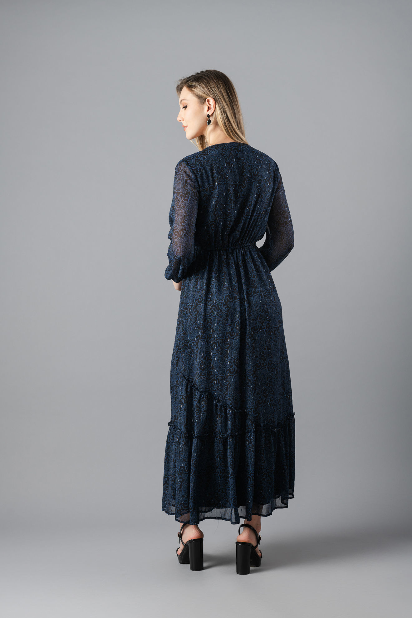 Vestido Midi Cuello V Manga Larga ( ExclusivoPagina)