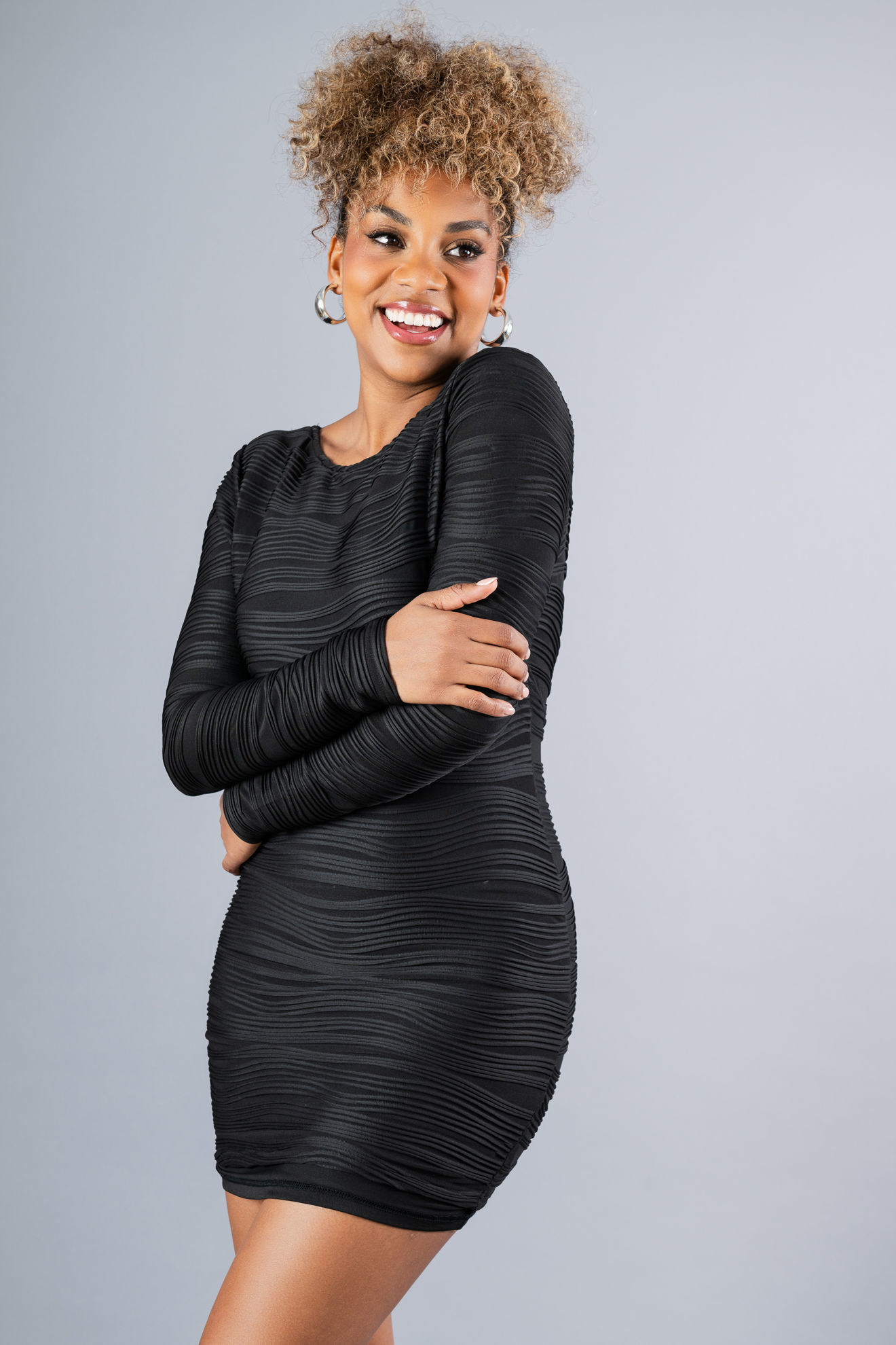 Vestido Mini Manga Larga, Escote Espalda (Exclusivo pagina)