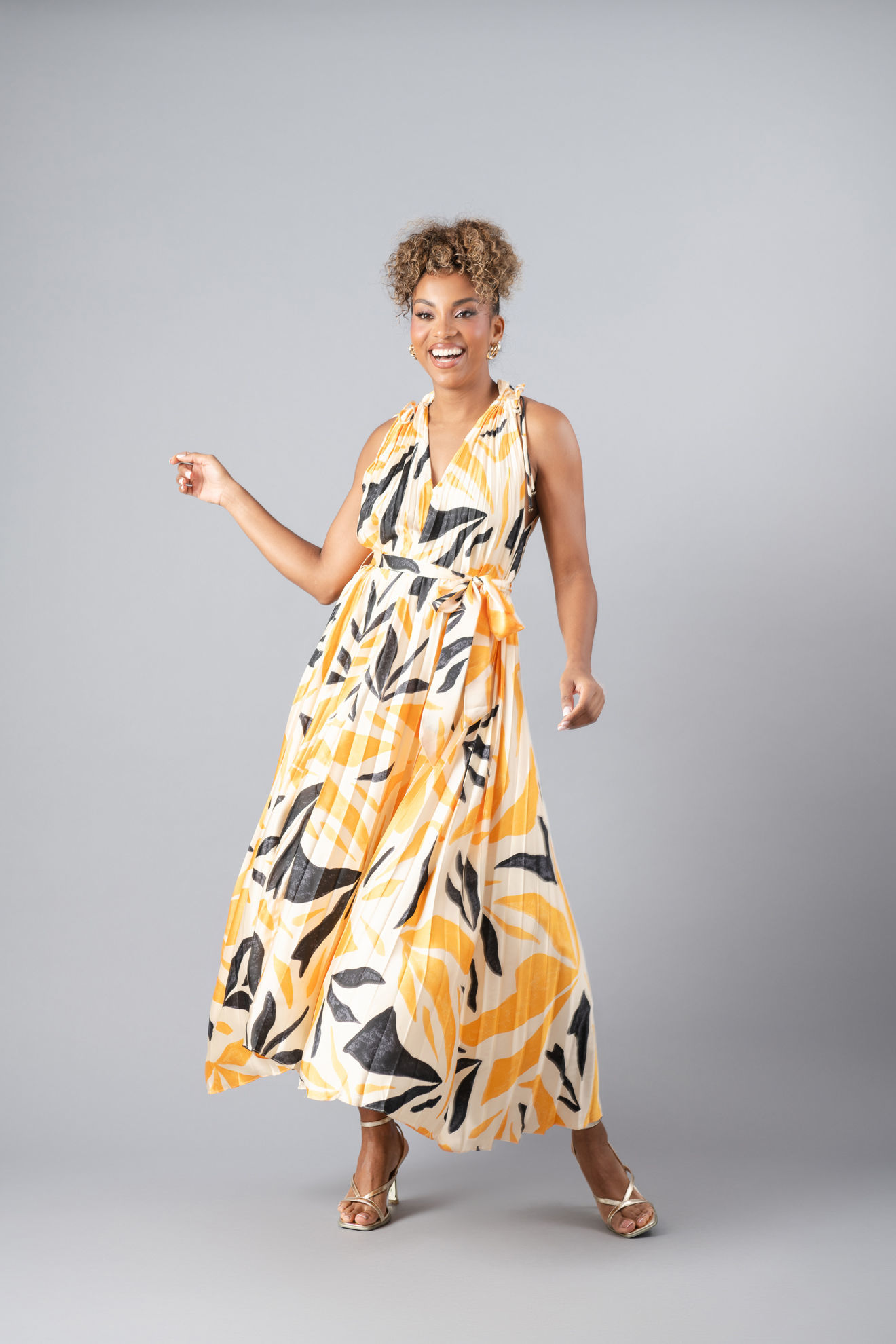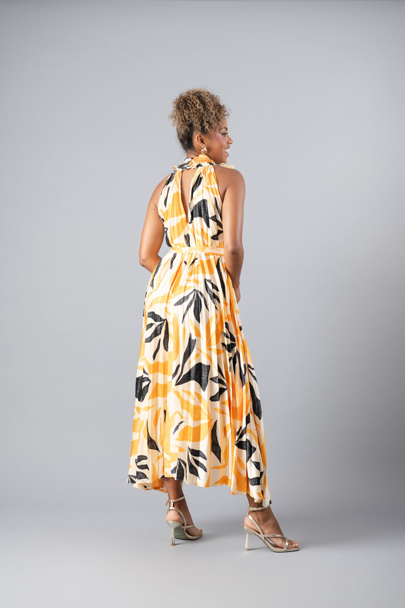 Vestido Plisado Estampado En Satin ( Exclusivo Pagina)