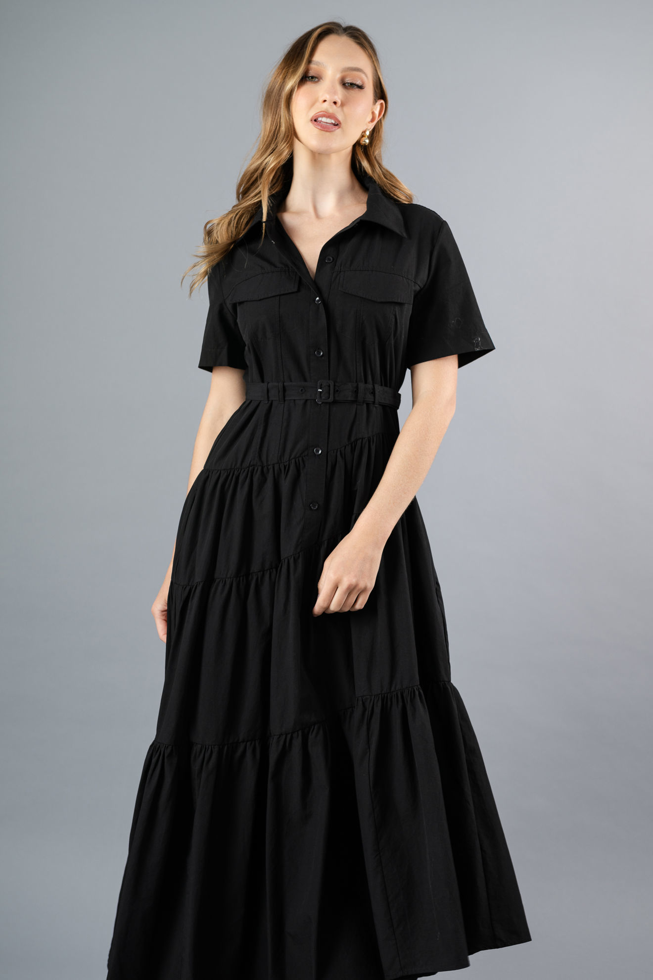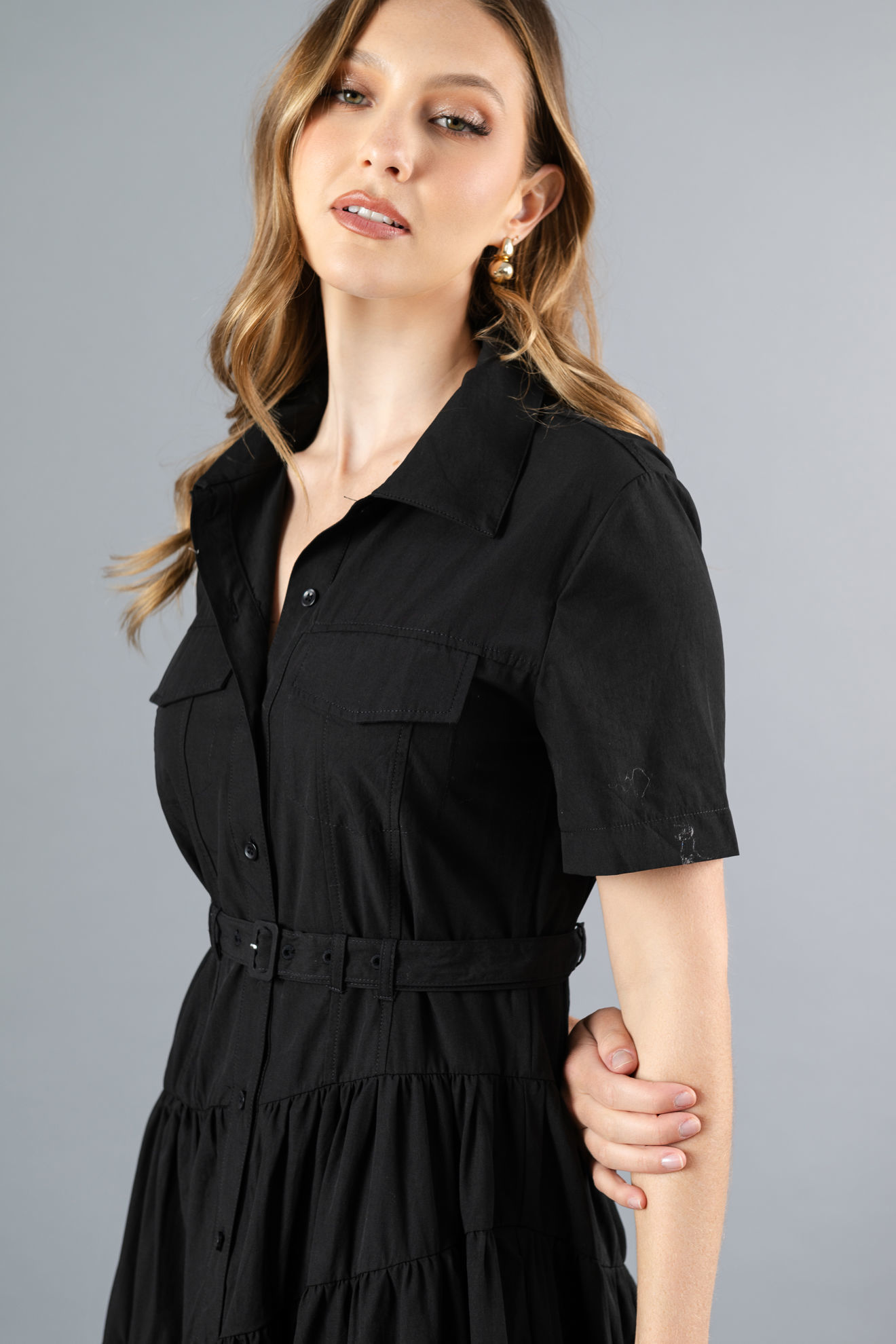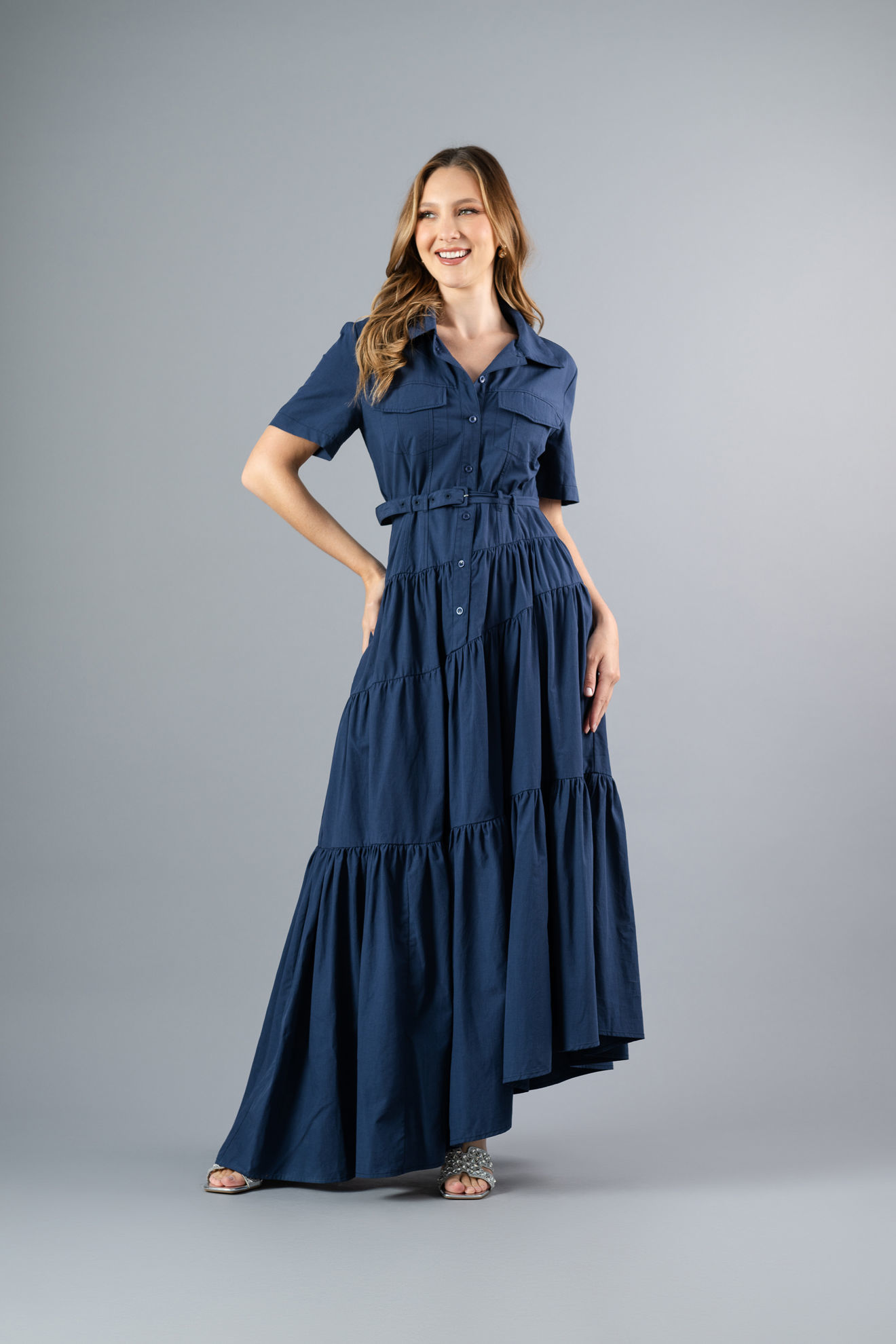 Vestido Camisero Tapas Bolsillo, Falda Asimetrica (Exclusivo Pagina)