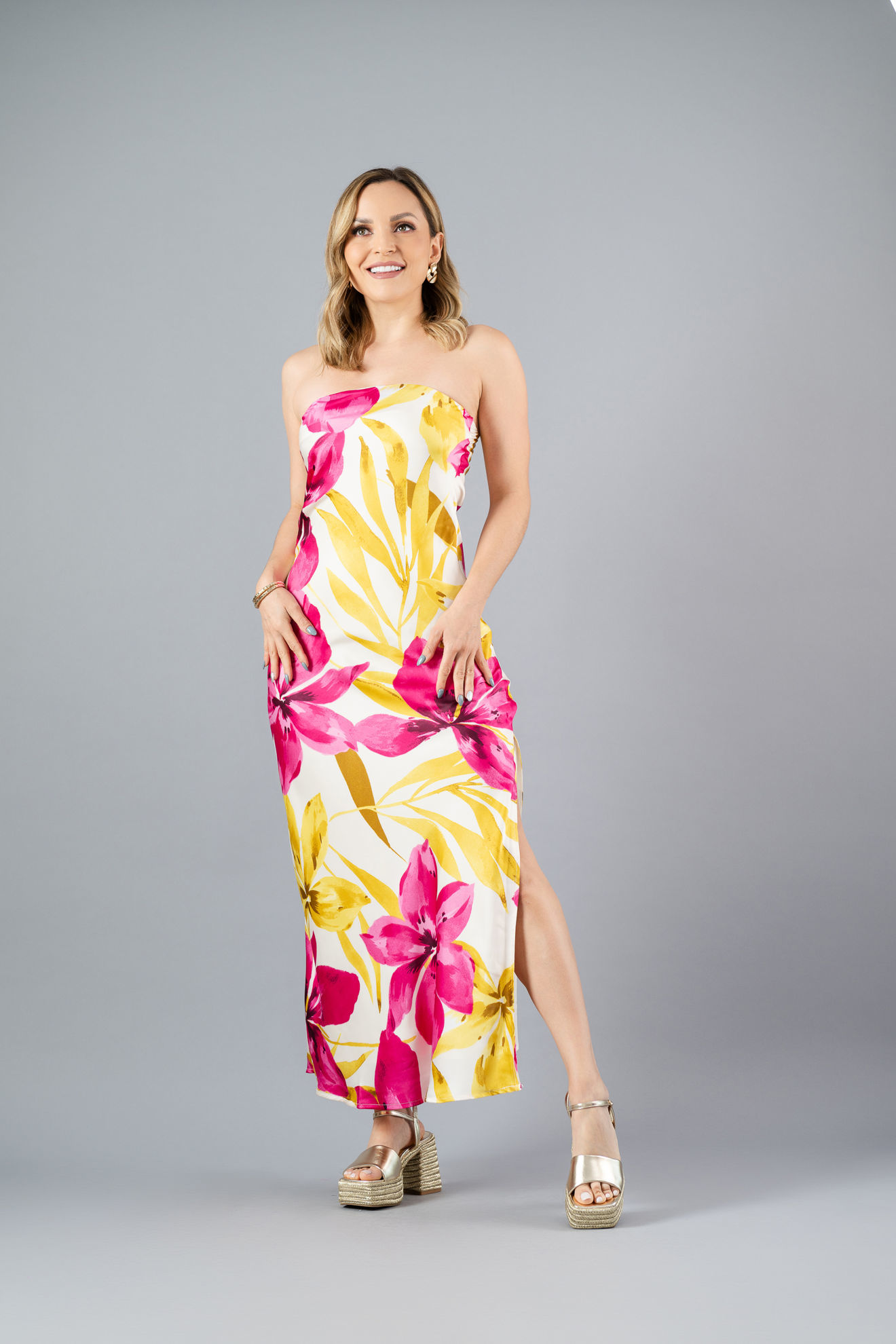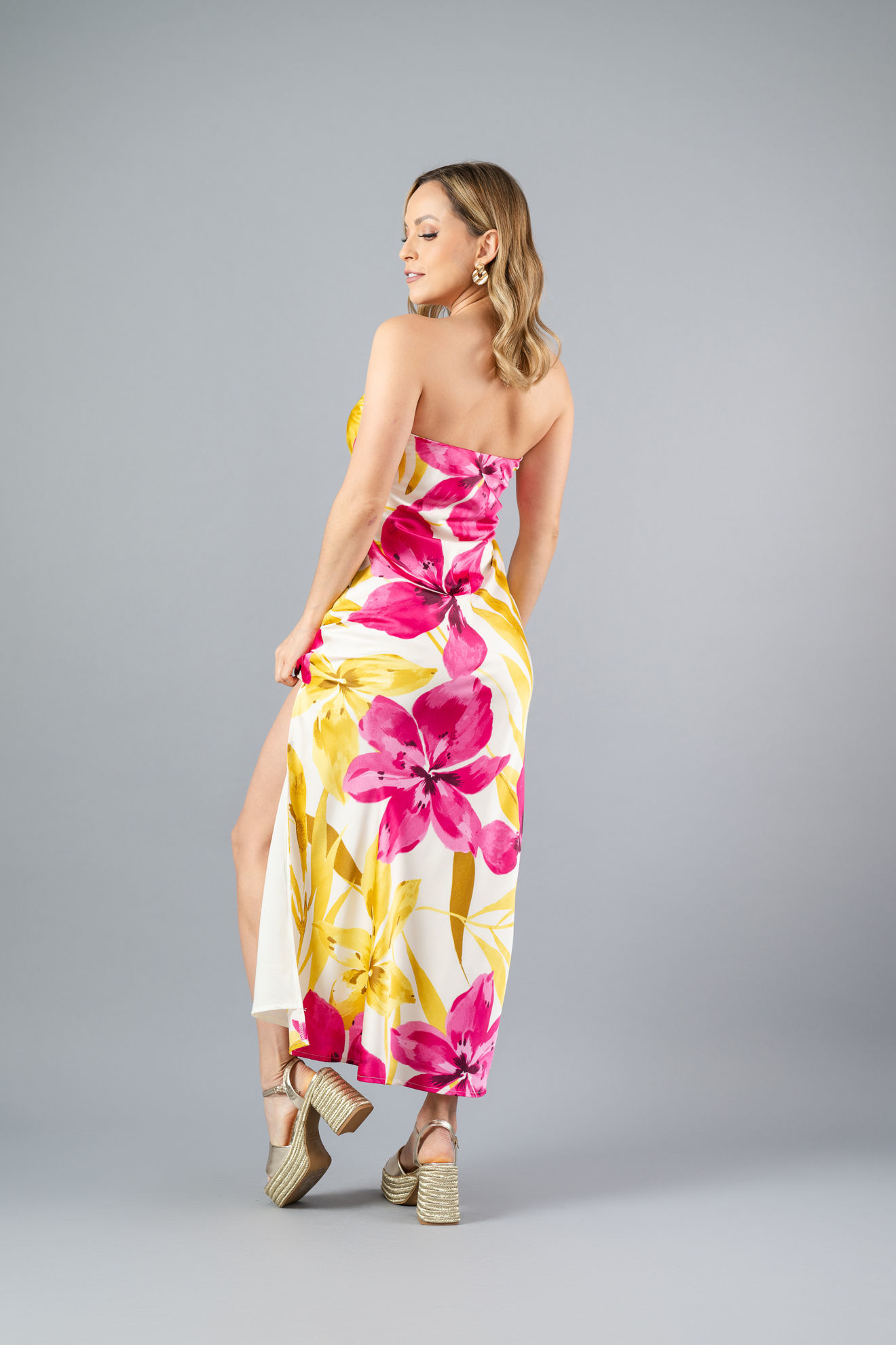 Vestido Straple En Satin,Print Floral ( Exclusivo Pagina)