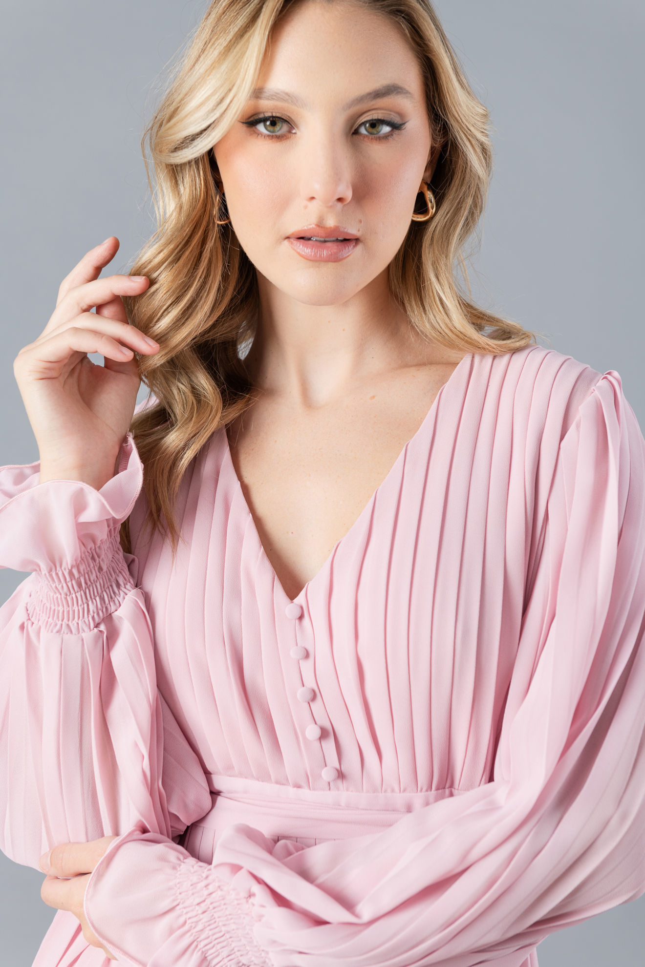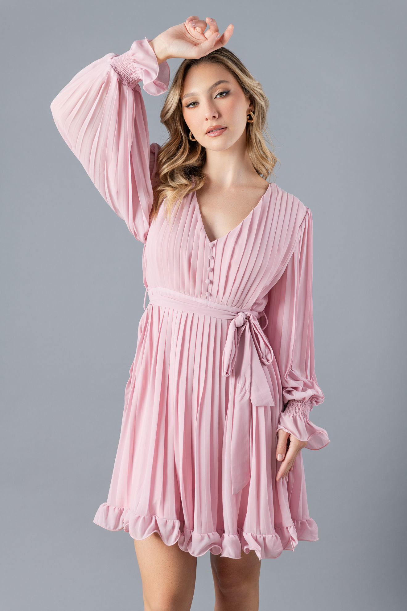 Vestido Manga Larga, Falda Plisada ( Exclusivo Pagina)