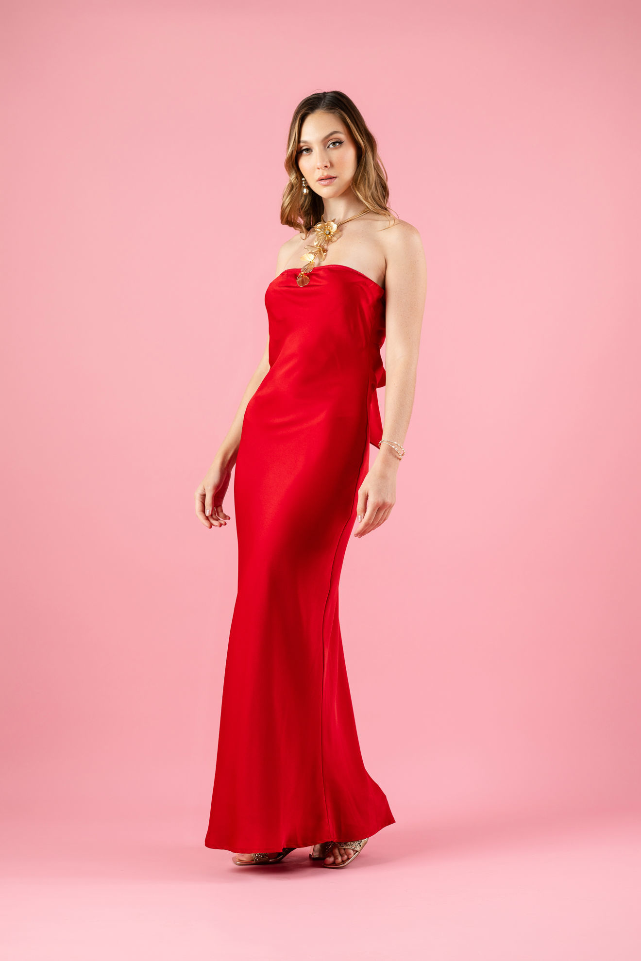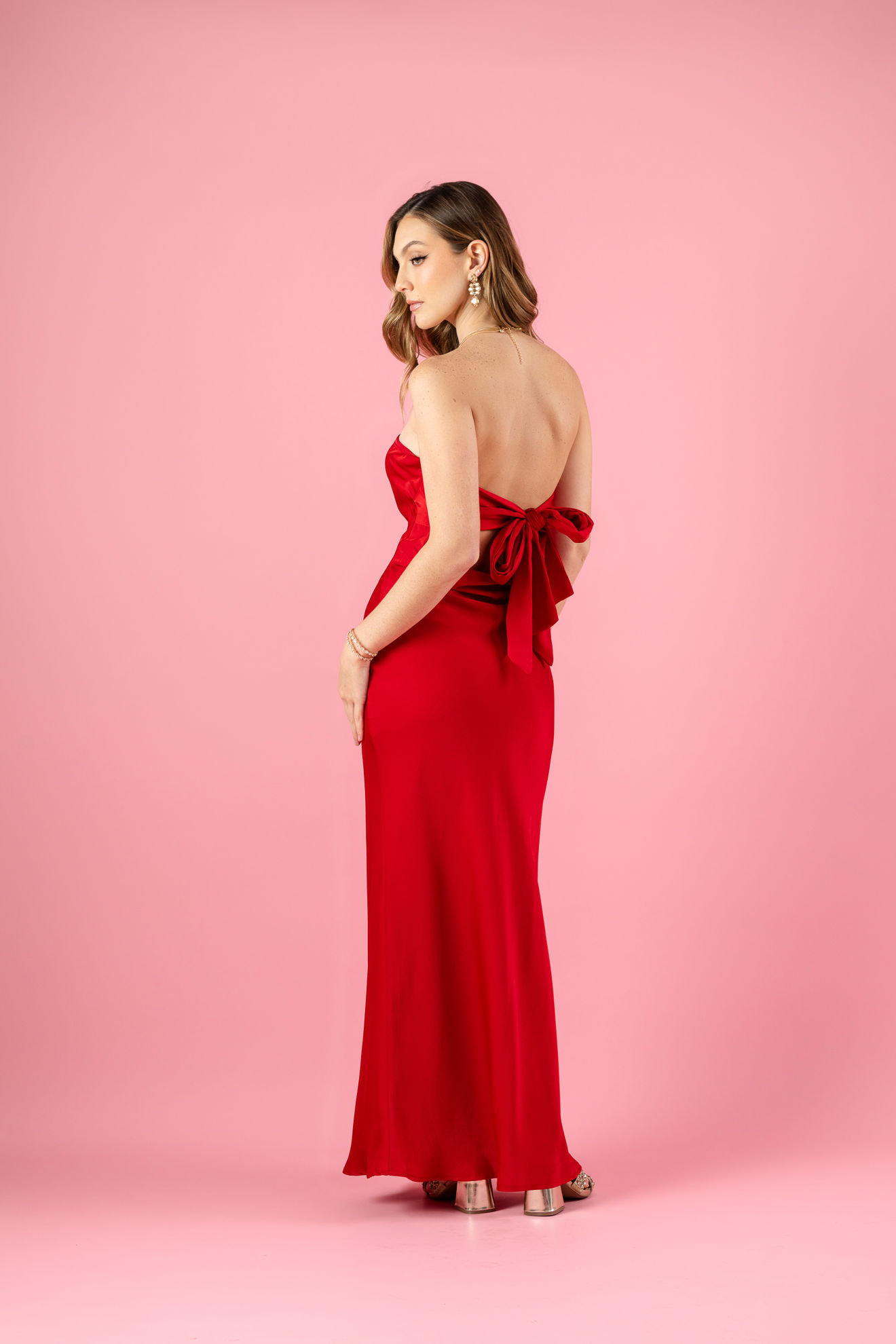 Vestido Straple En Satin, Nudo Espalda ( Exclusivo Pagina)