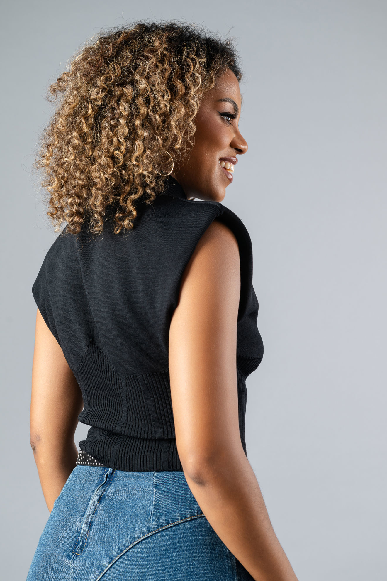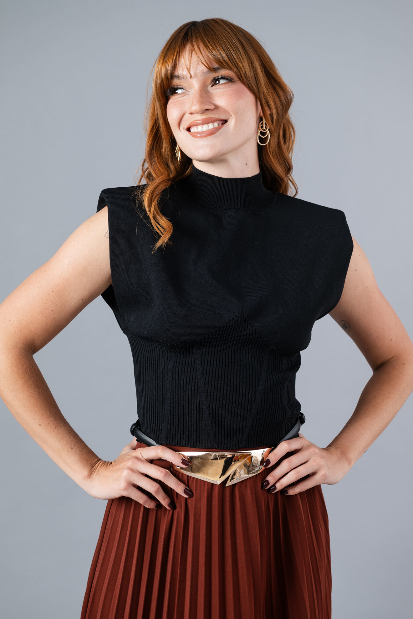 Crop Top Cuello Alto, Hombreras