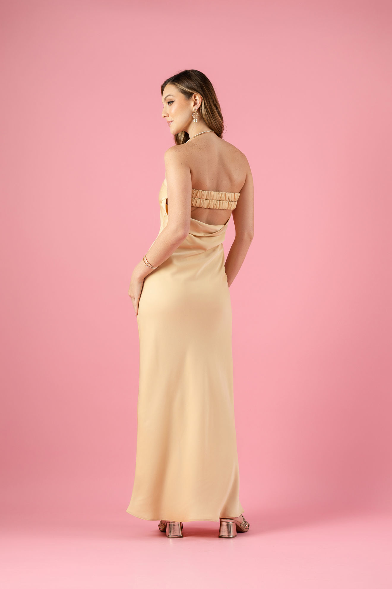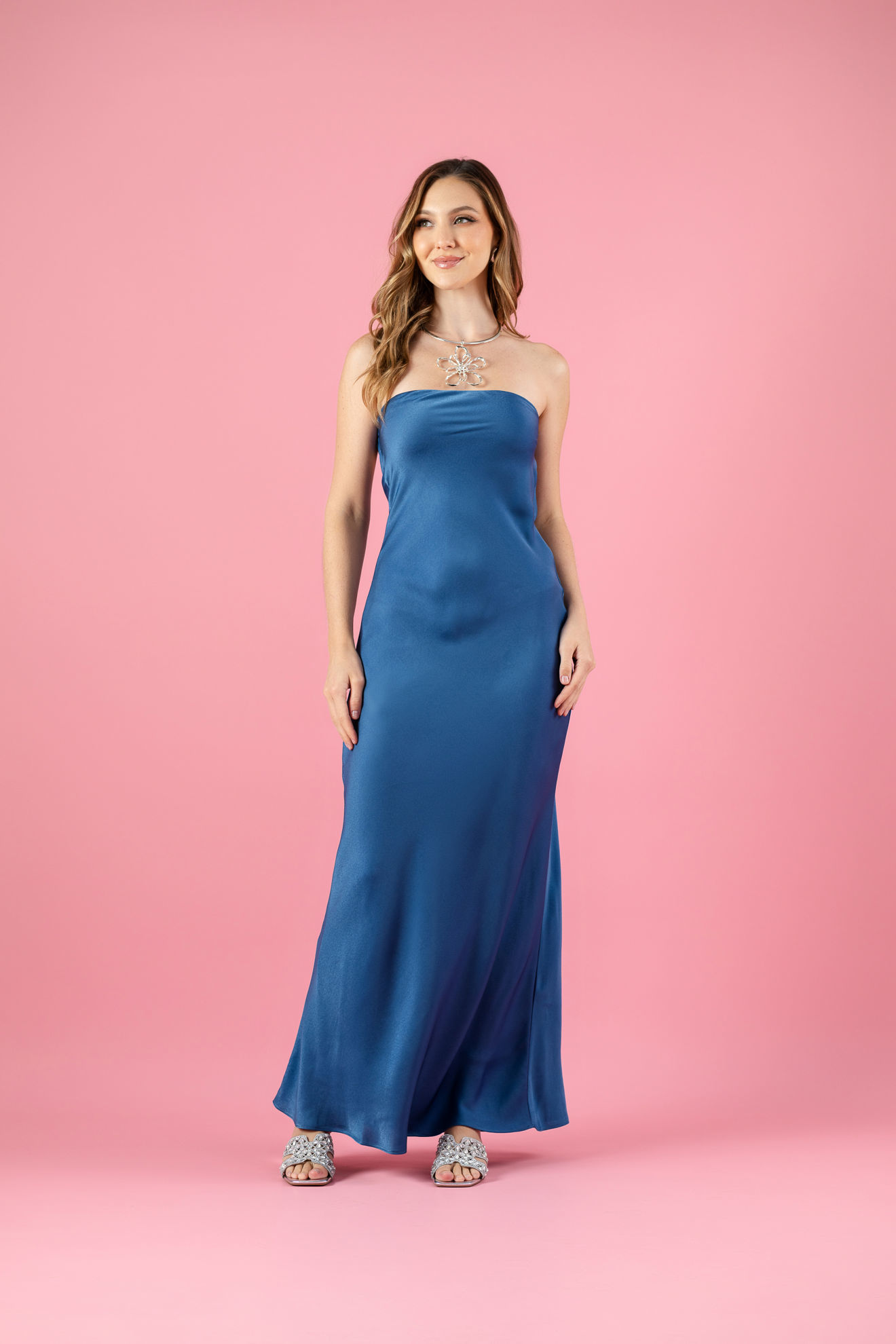 Vestido En Satin Straple, Abertura Espalda (Exclusivo Pagina)