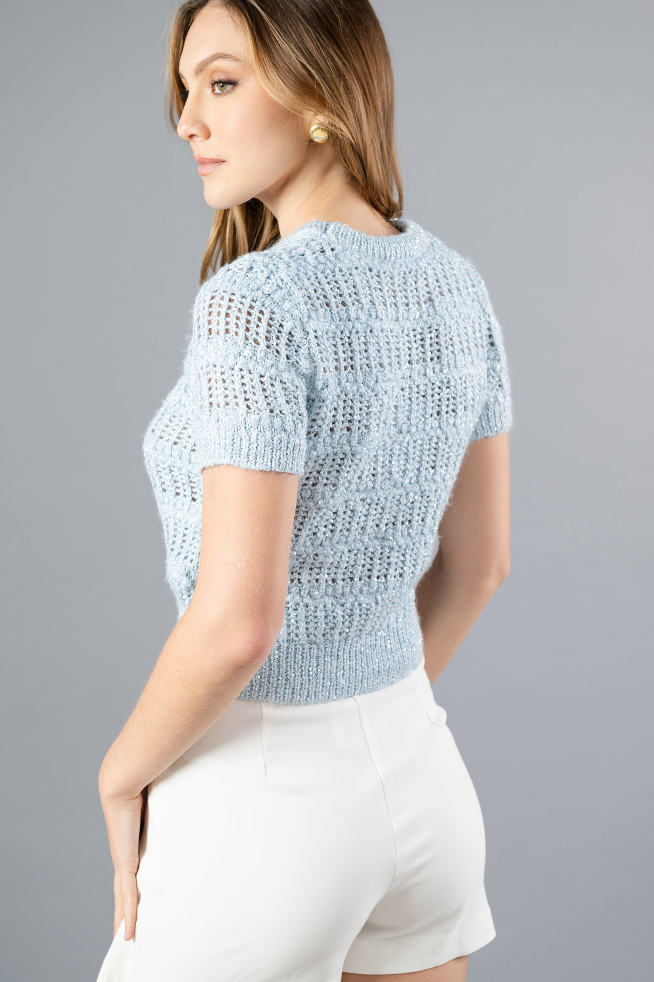 Blusa Tejida Cuello Redondo Manga Corta ( Exclusiva Pagina)