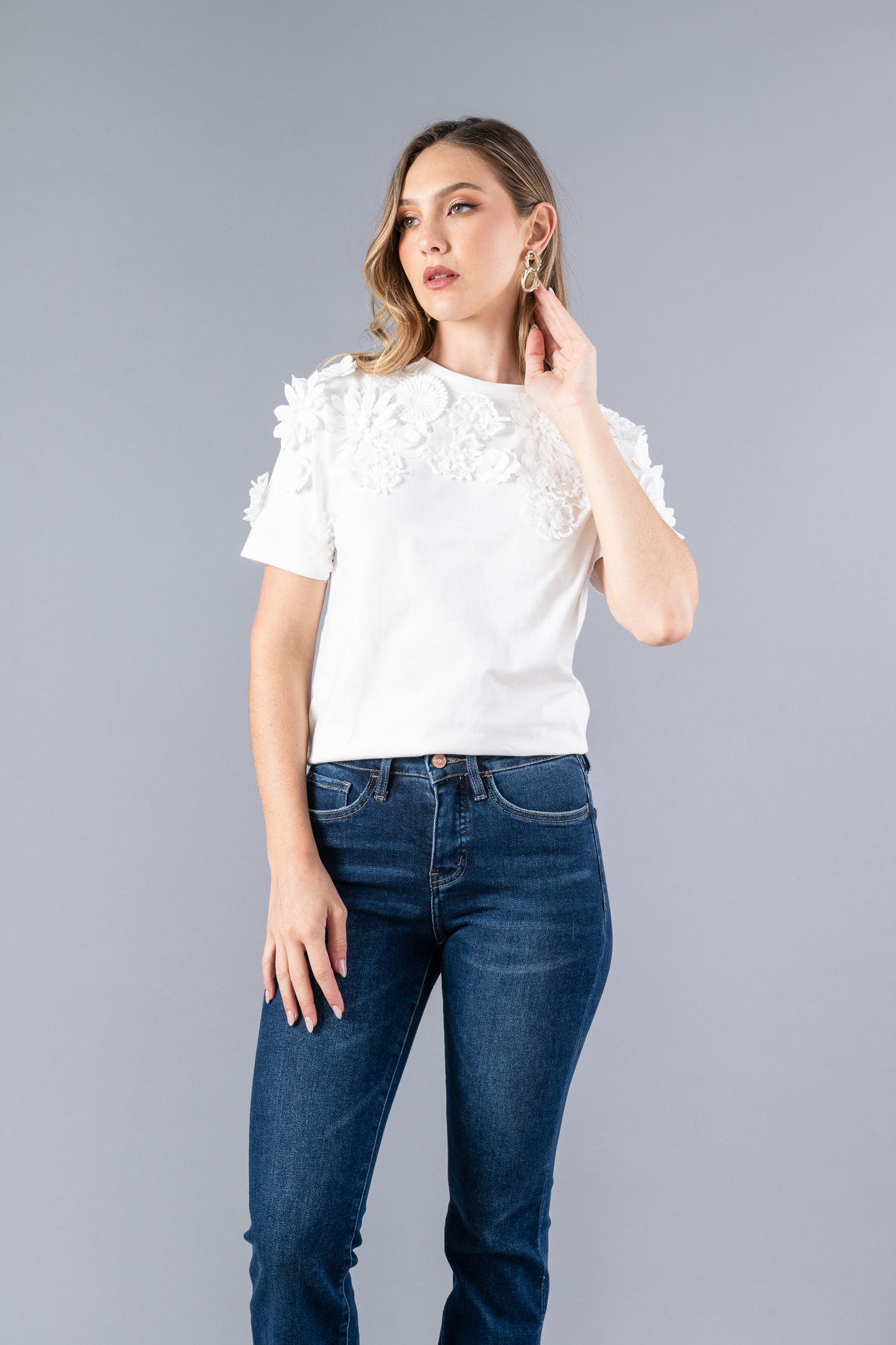 T Shirt Detalle Flores En Relieve ( Exclusiva Pagina)