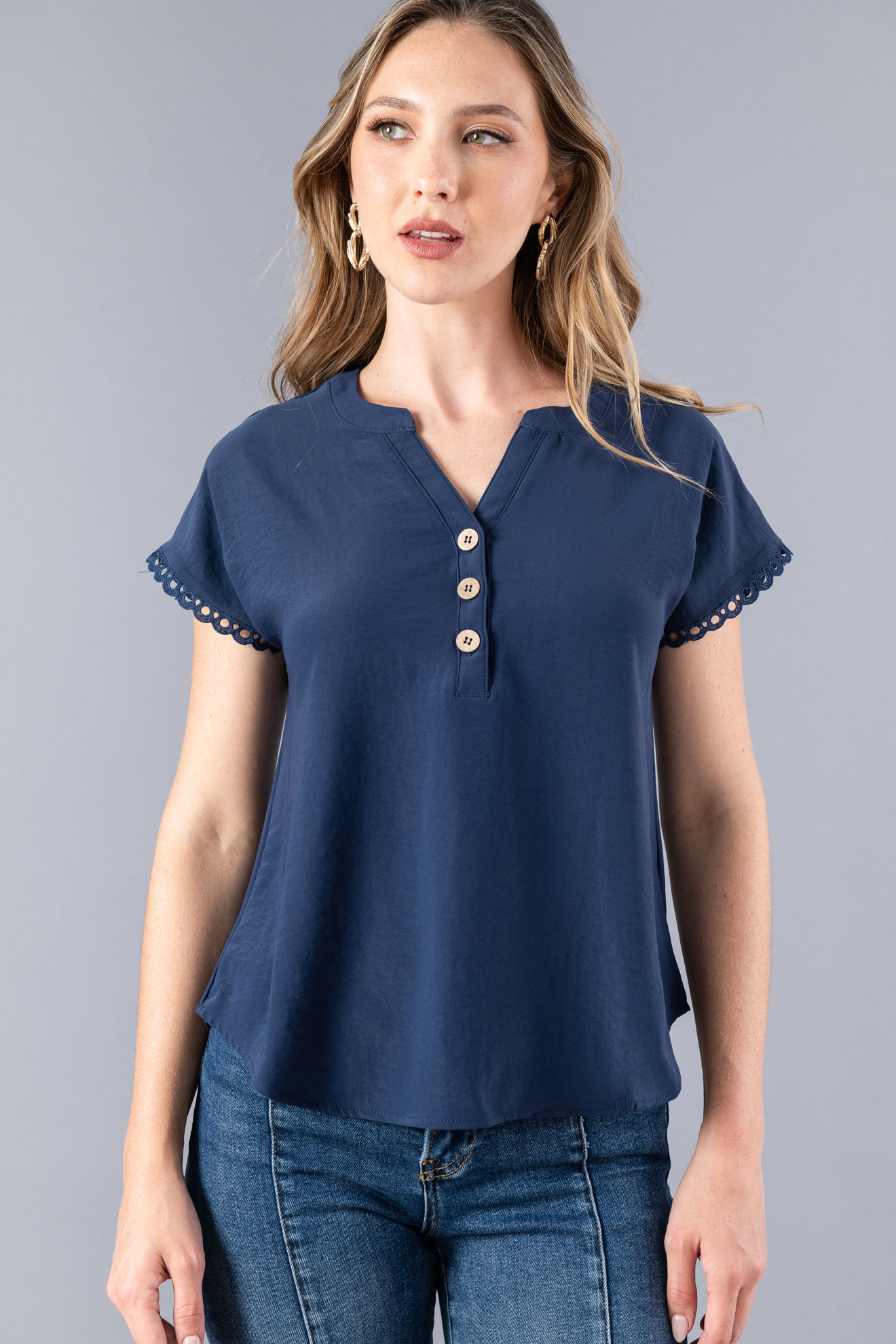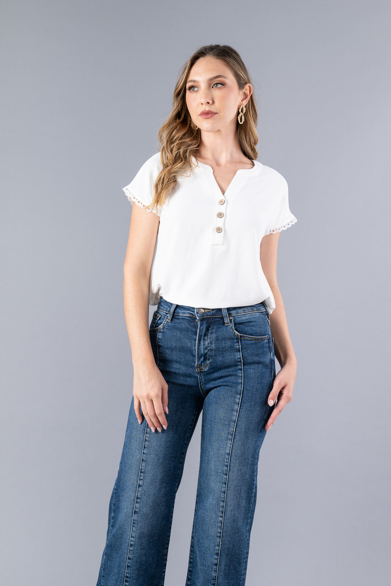 Blusa Botones Madera, Detalle Croche Mangas ( Exclusivo pagina )