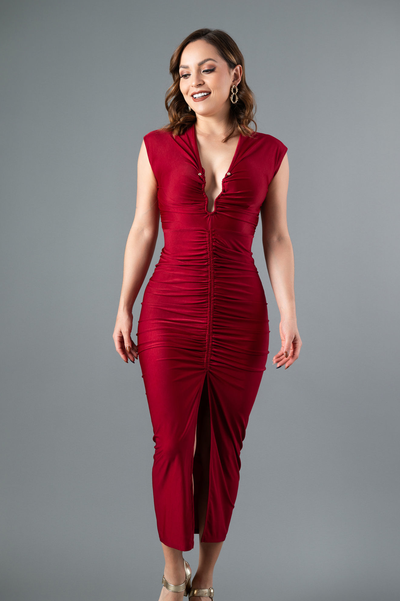 Vestido Escote Profundo, Abertura Falda