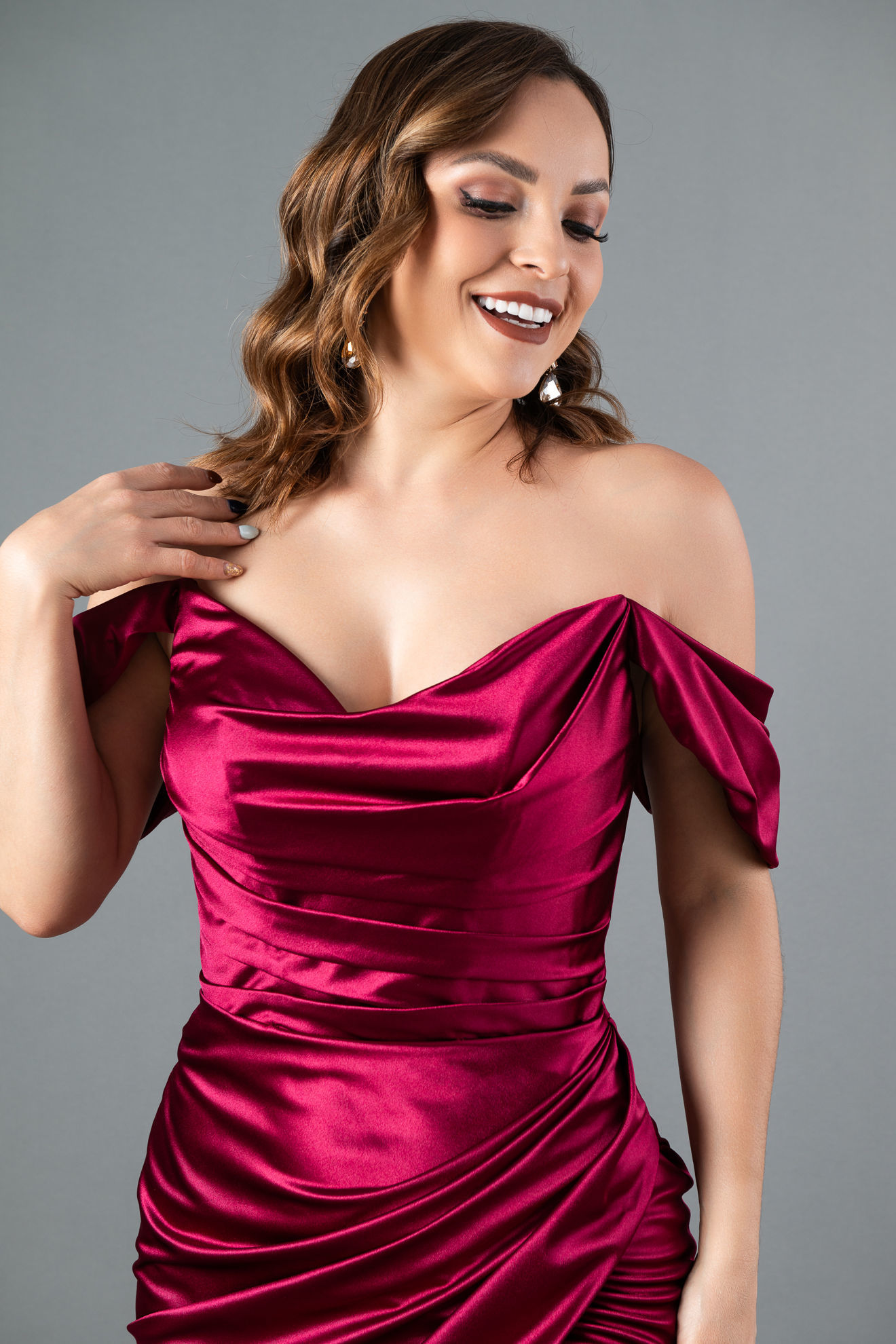 Maxi Dress En Satin Off Shoulder
