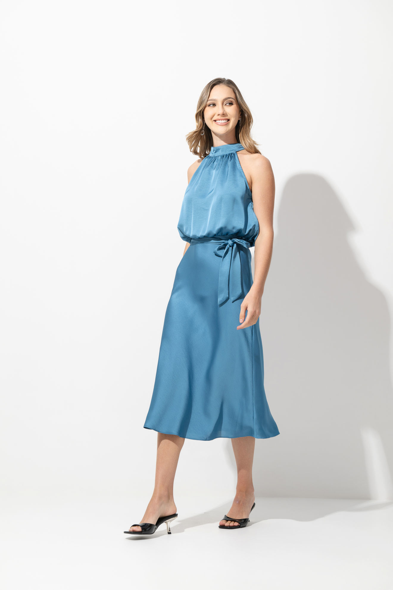 Vestido En Satin Cuello Halter