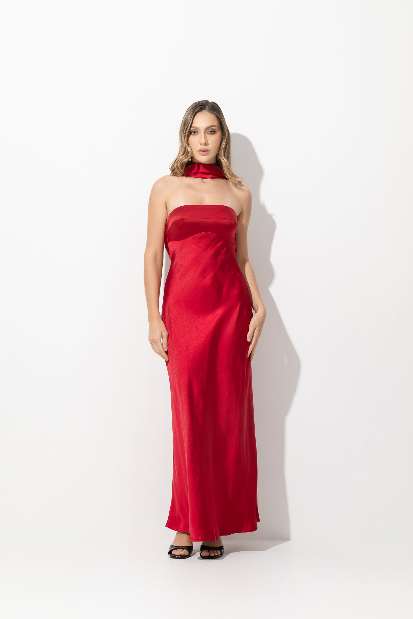 Vestido En Satin Straple frente, Cuello Bobo Espalda