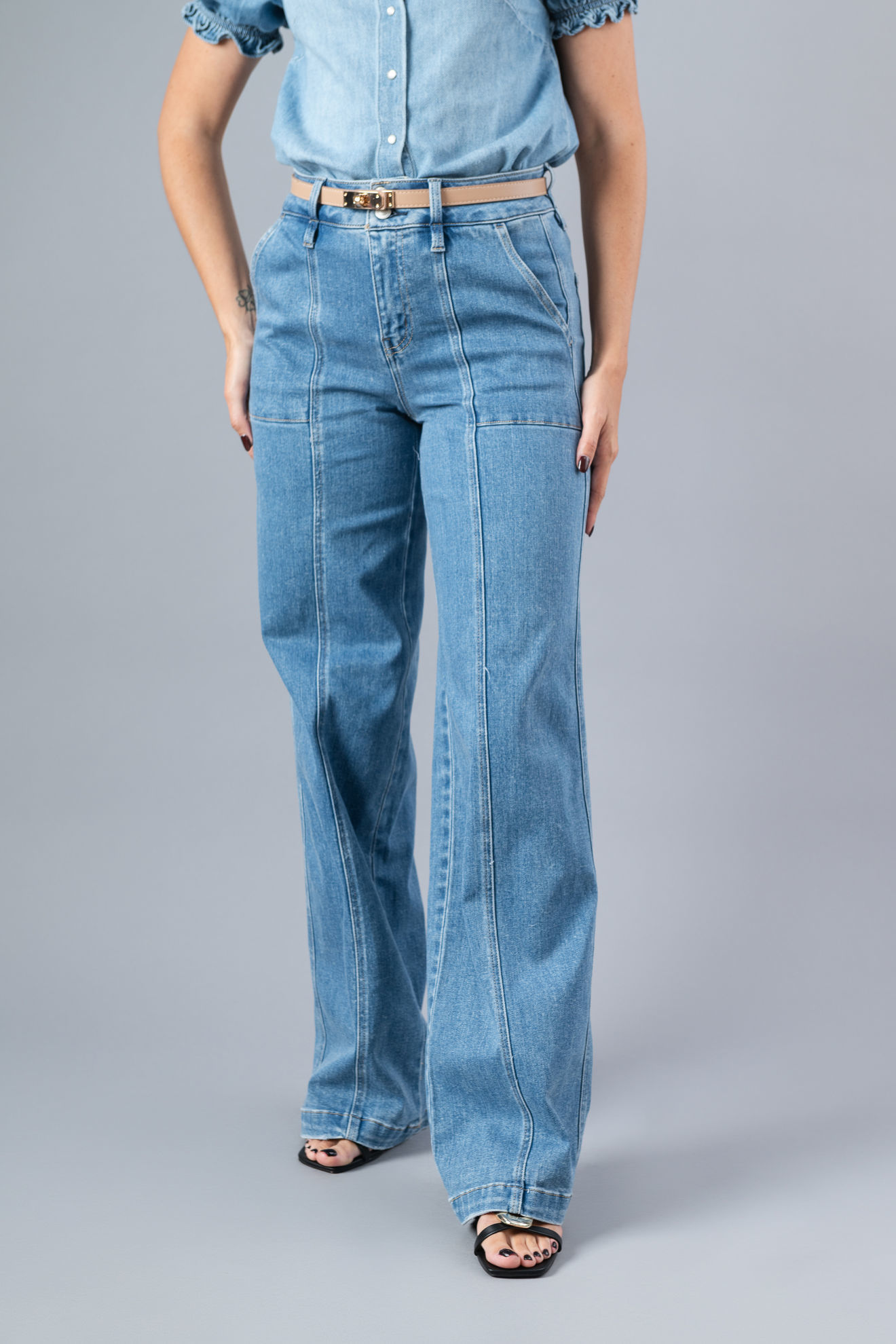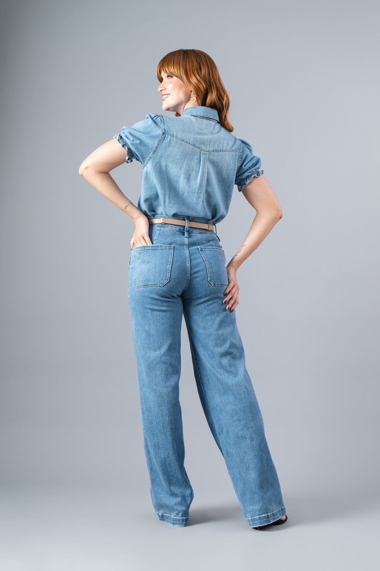 High Rise, Straight Leg, Bolsa Parche Jeans